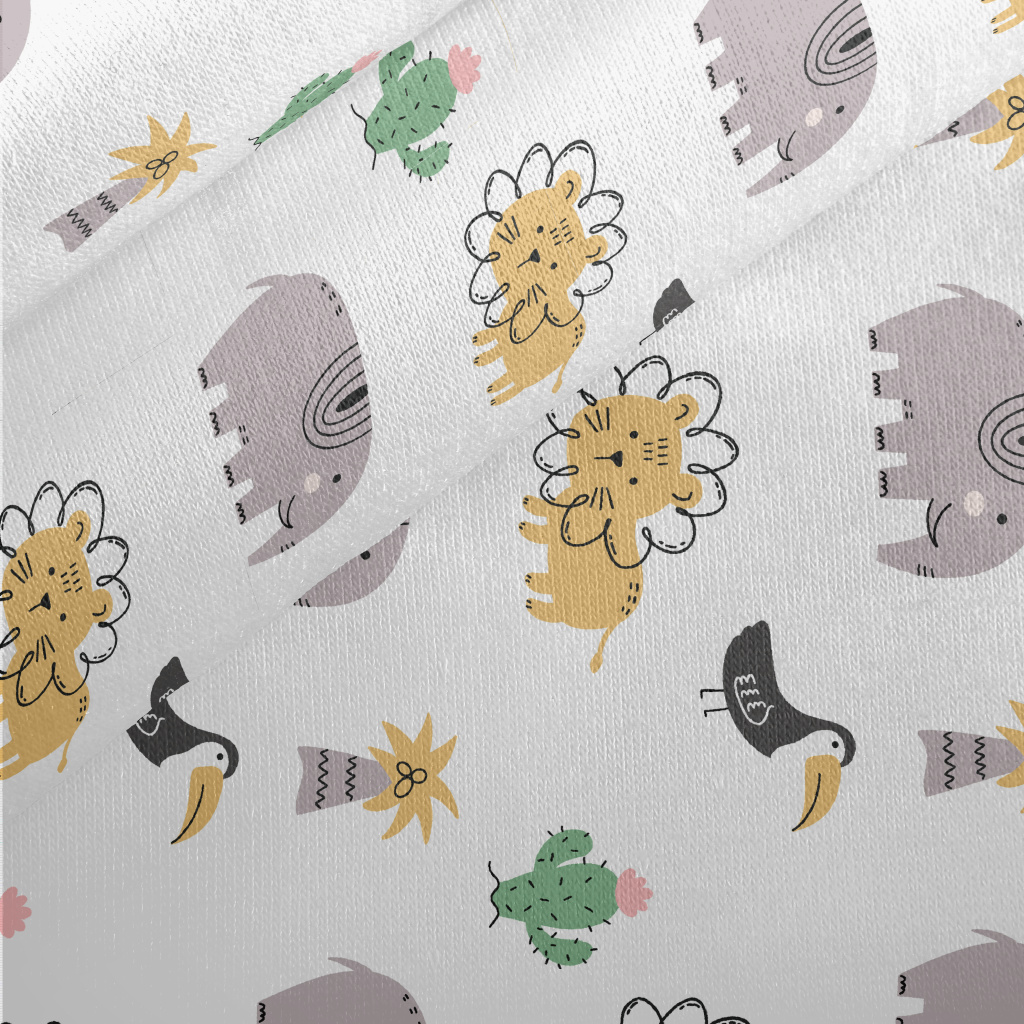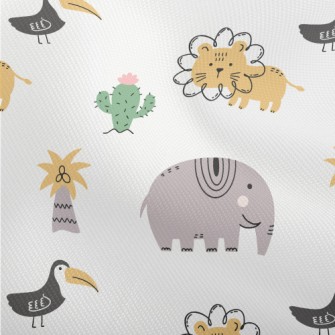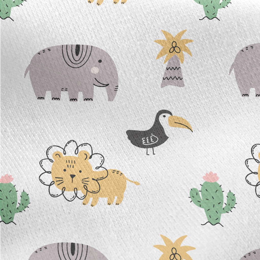 非洲鳥類和大型動物刷毛布(幅寬150公分)