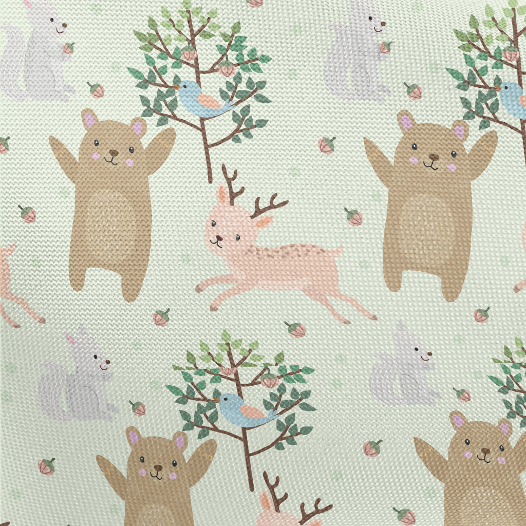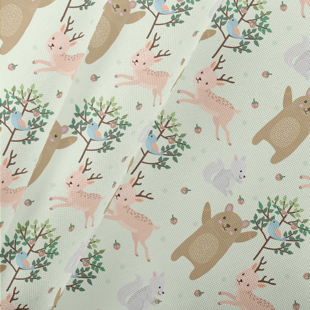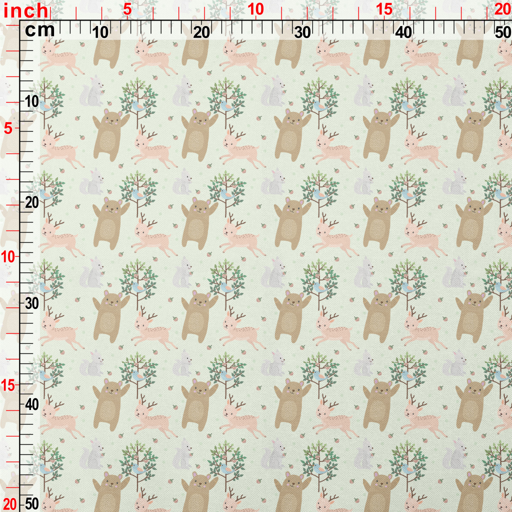 草原上玩耍的熊和鹿春亞紡(幅寬160公分)