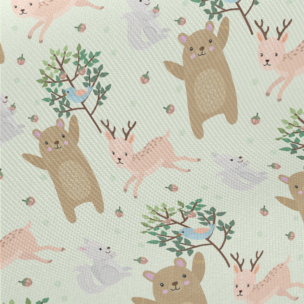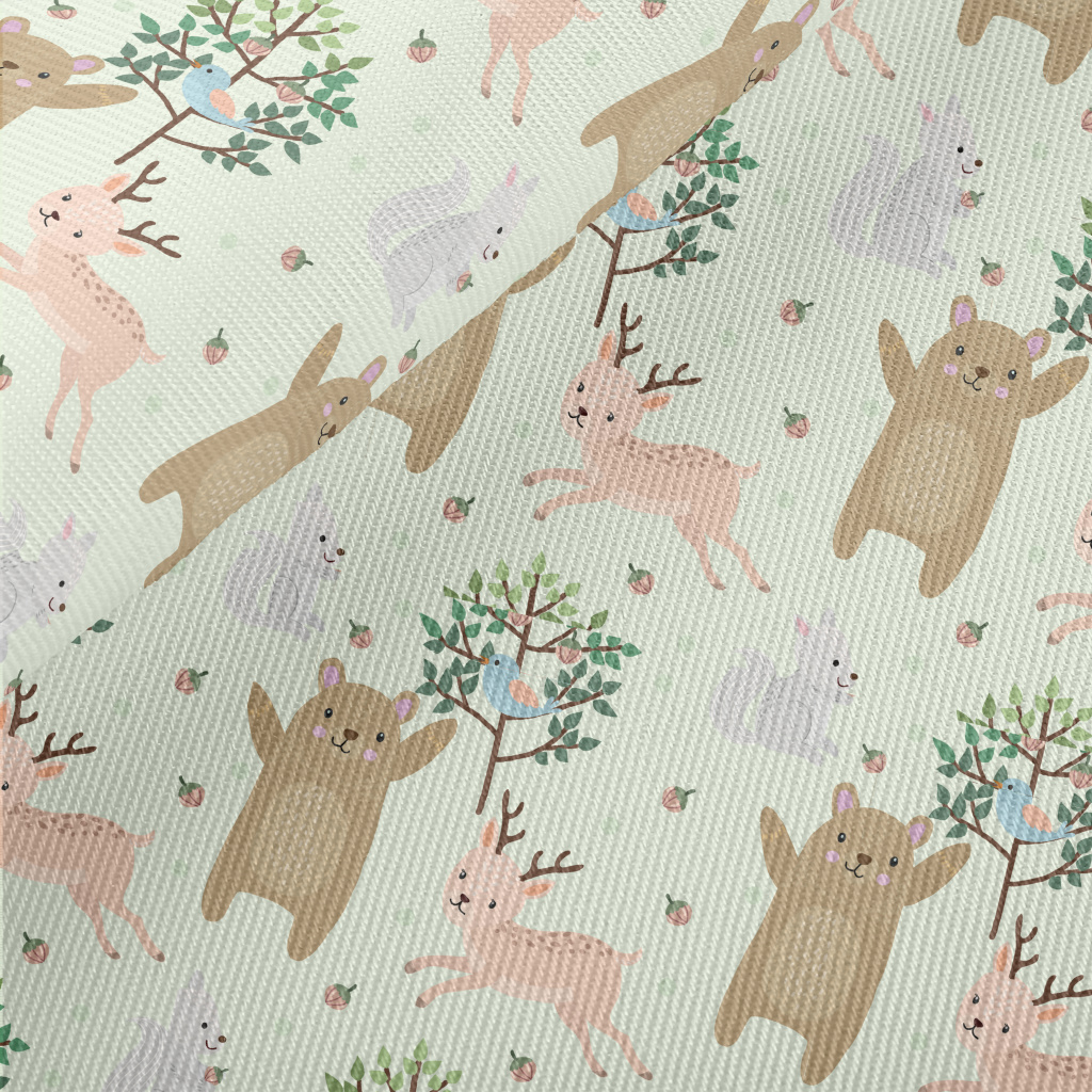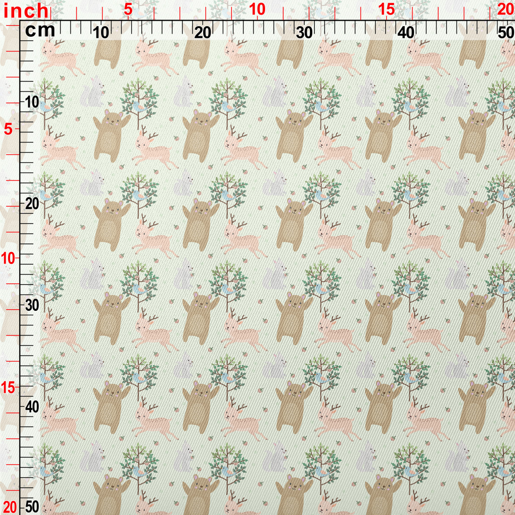 草原上玩耍的熊和鹿厚棉布(幅寬150公分)