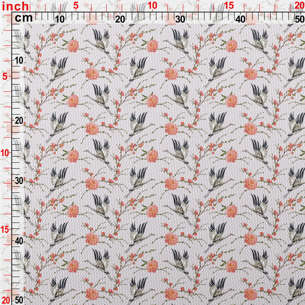 花卉與飛行的丹頂鶴泡泡布(幅寬160公分)