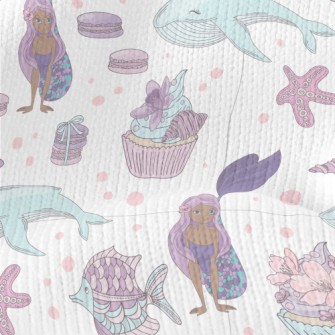 美人魚與鯨魚女孩雪紡布(幅寬150公分)