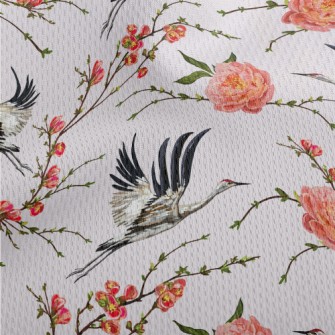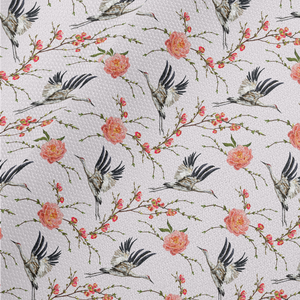 花卉與飛行的丹頂鶴帆布(幅寬150公分)