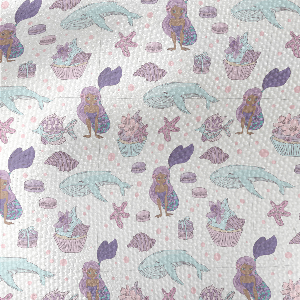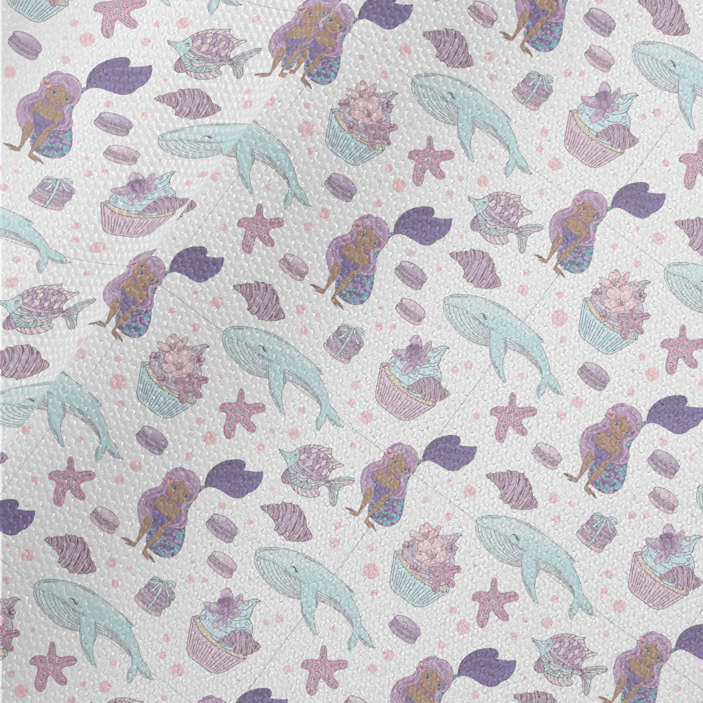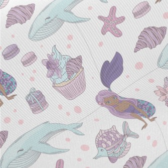 美人魚與鯨魚女孩帆布(幅寬150公分)