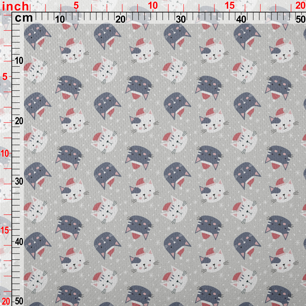 貓偷戴聖誕老人的帽子鳥眼布(幅寬160公分)