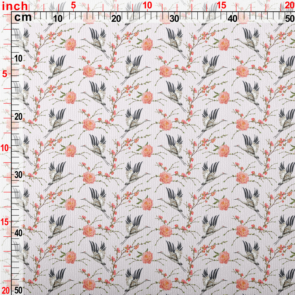 花卉與飛行的丹頂鶴毛巾布(幅寬160公分)