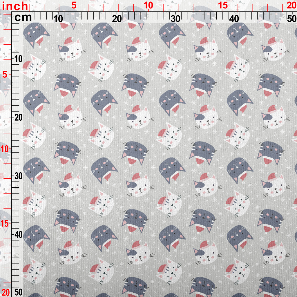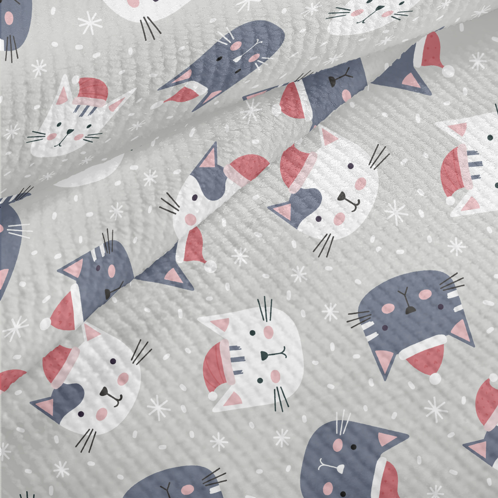 貓偷戴聖誕老人的帽子毛巾布(幅寬160公分)