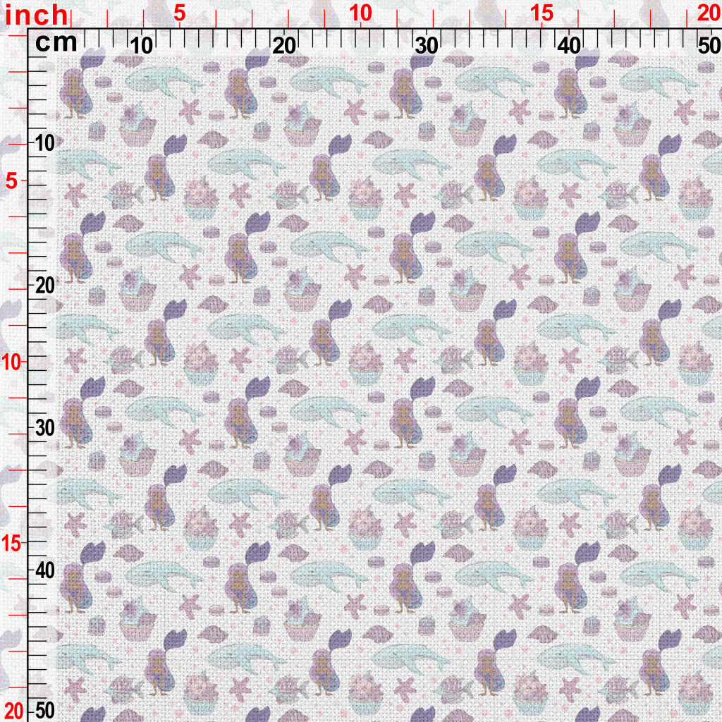 美人魚與鯨魚女孩麻布(幅寬150公分)