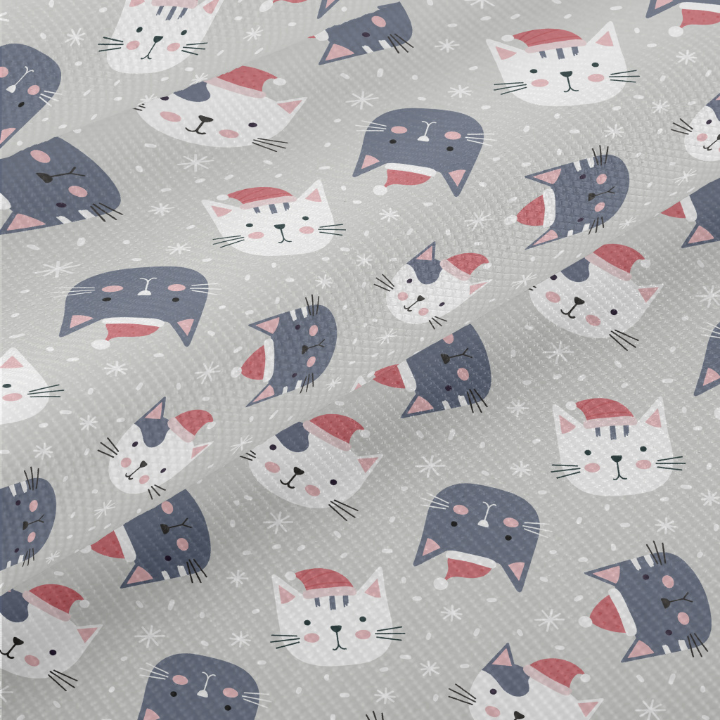 貓偷戴聖誕老人的帽子雙斜布(幅寬150公分)