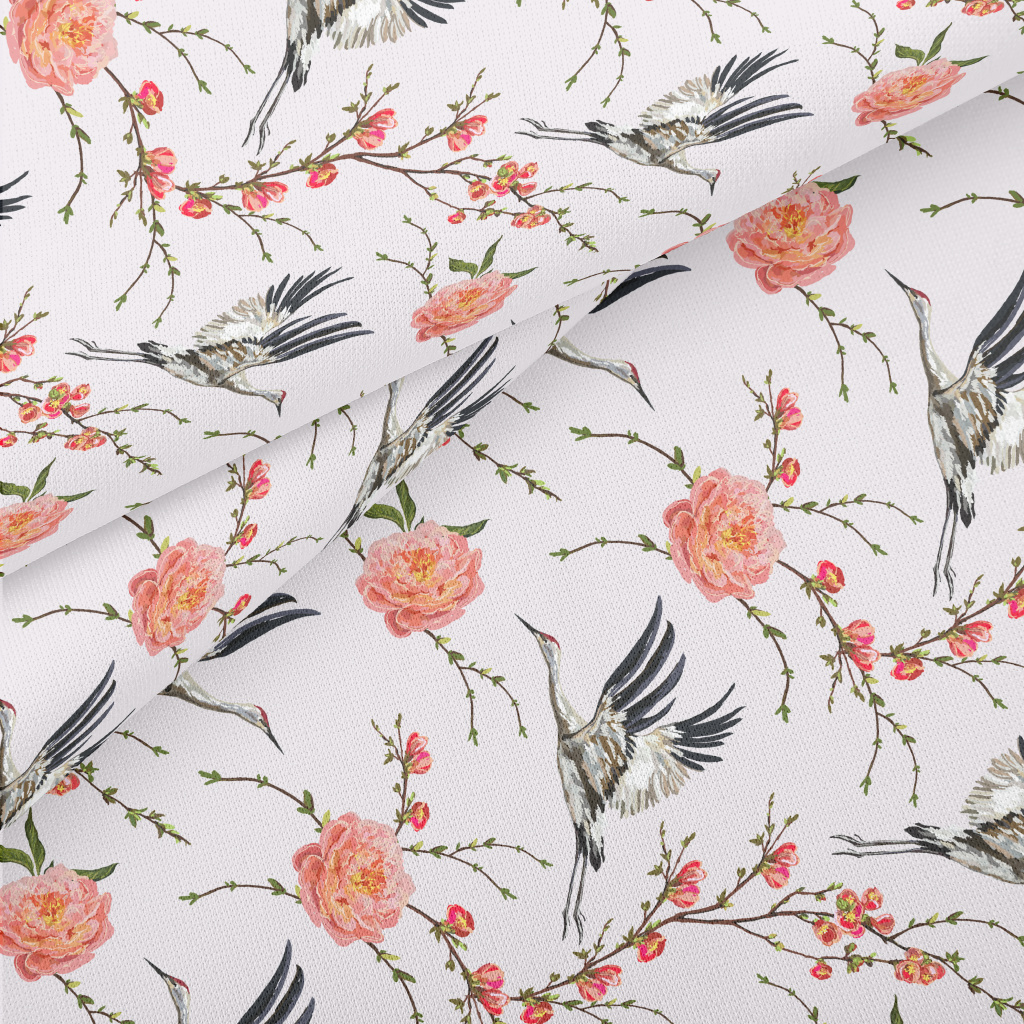 花卉與飛行的丹頂鶴羅馬布(幅寬160公分)