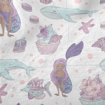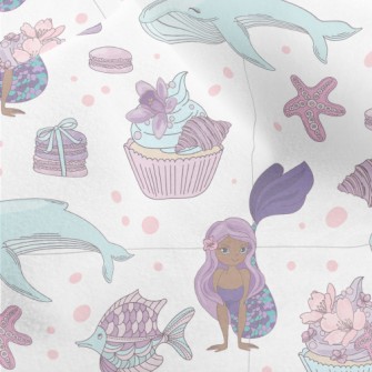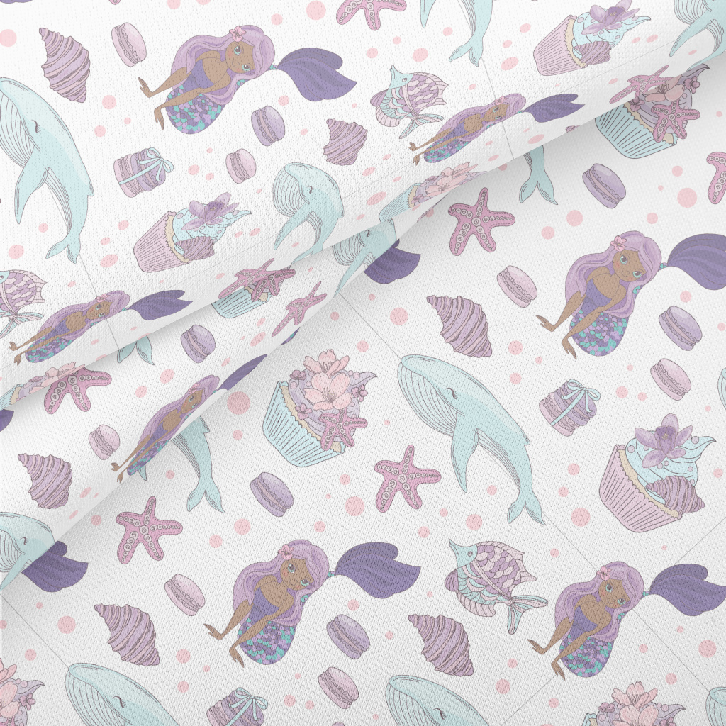 美人魚與鯨魚女孩羅馬布(幅寬160公分)