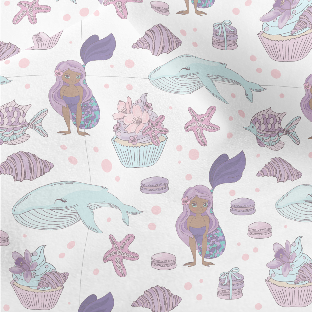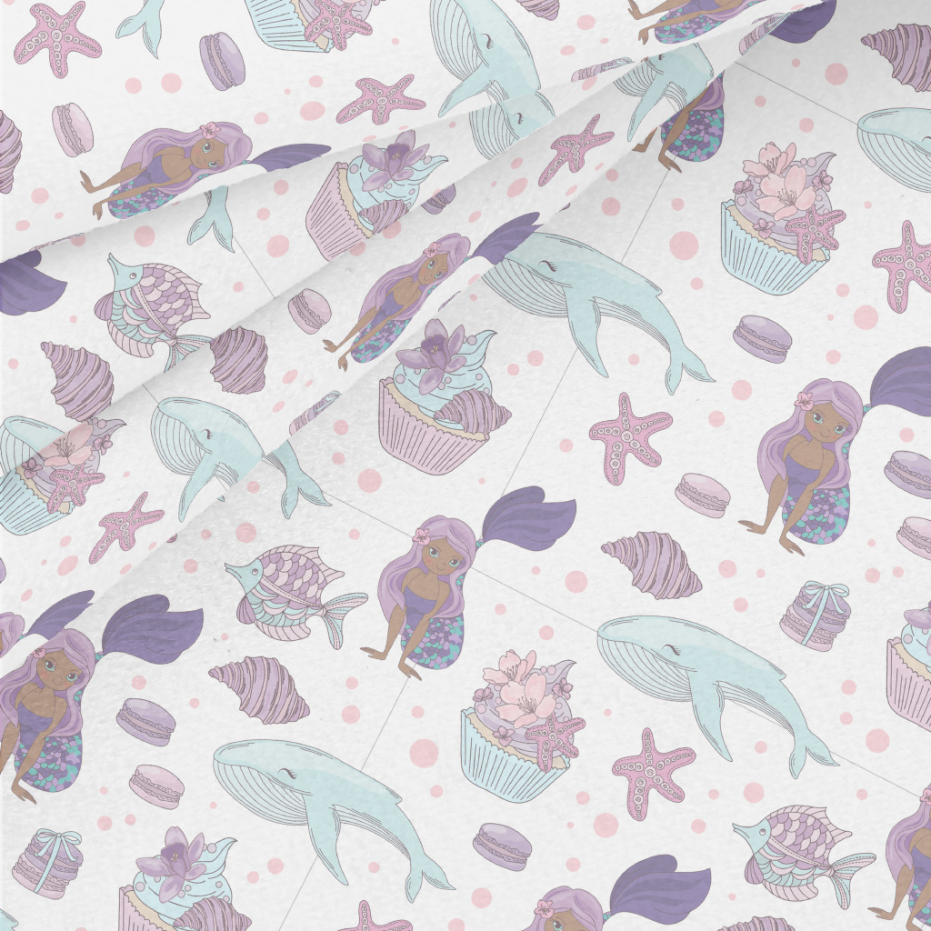 美人魚與鯨魚女孩水晶絨(幅寬160公分)