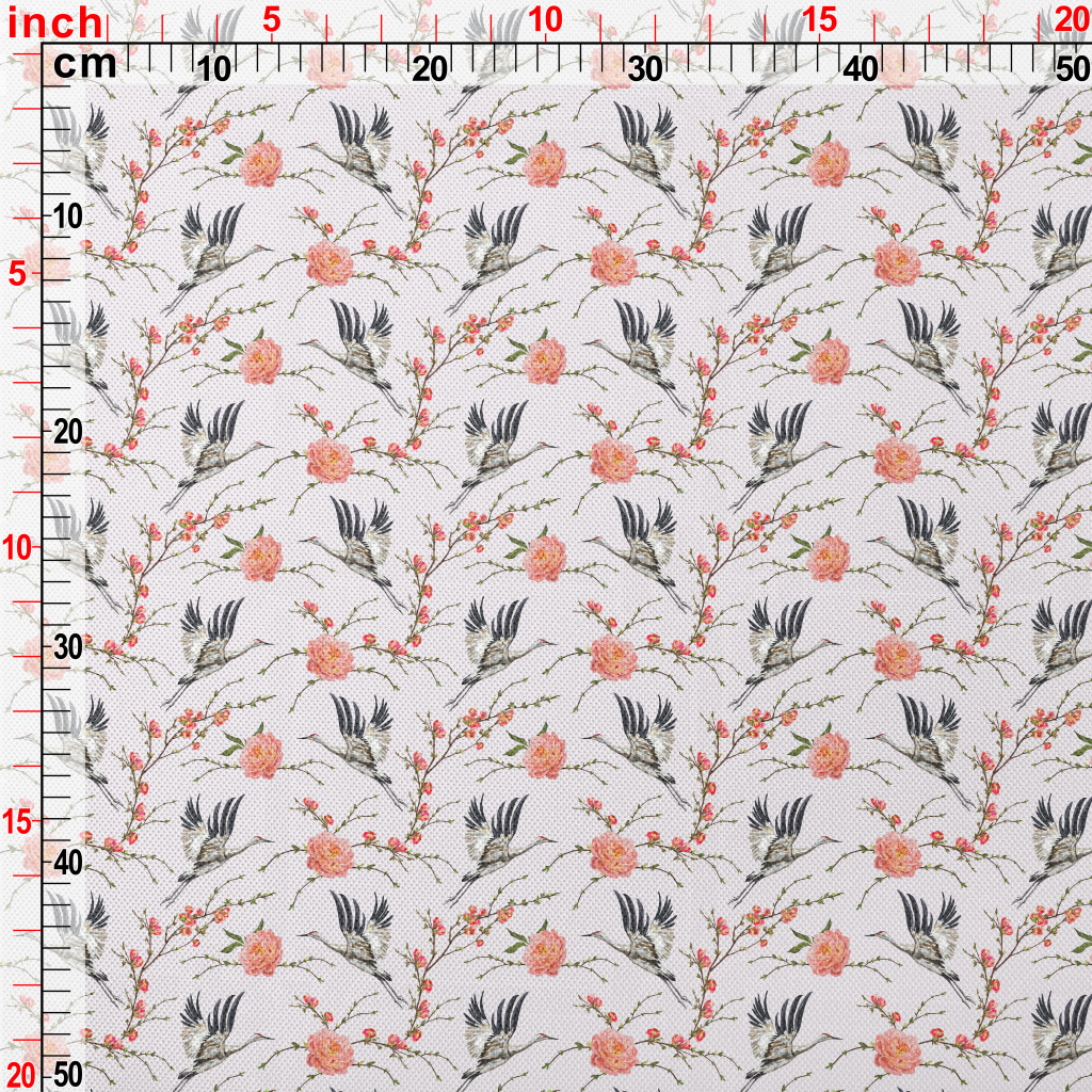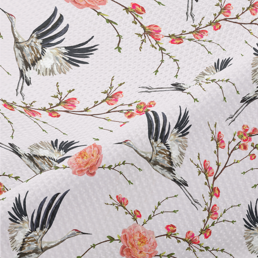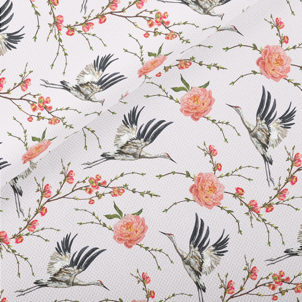 花卉與飛行的丹頂鶴高爾布(幅寬180公分)