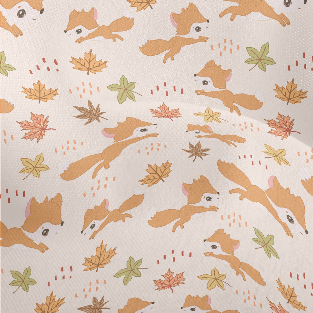 秋天奔跑的大眼狐狸竹節麻(幅寬150公分)