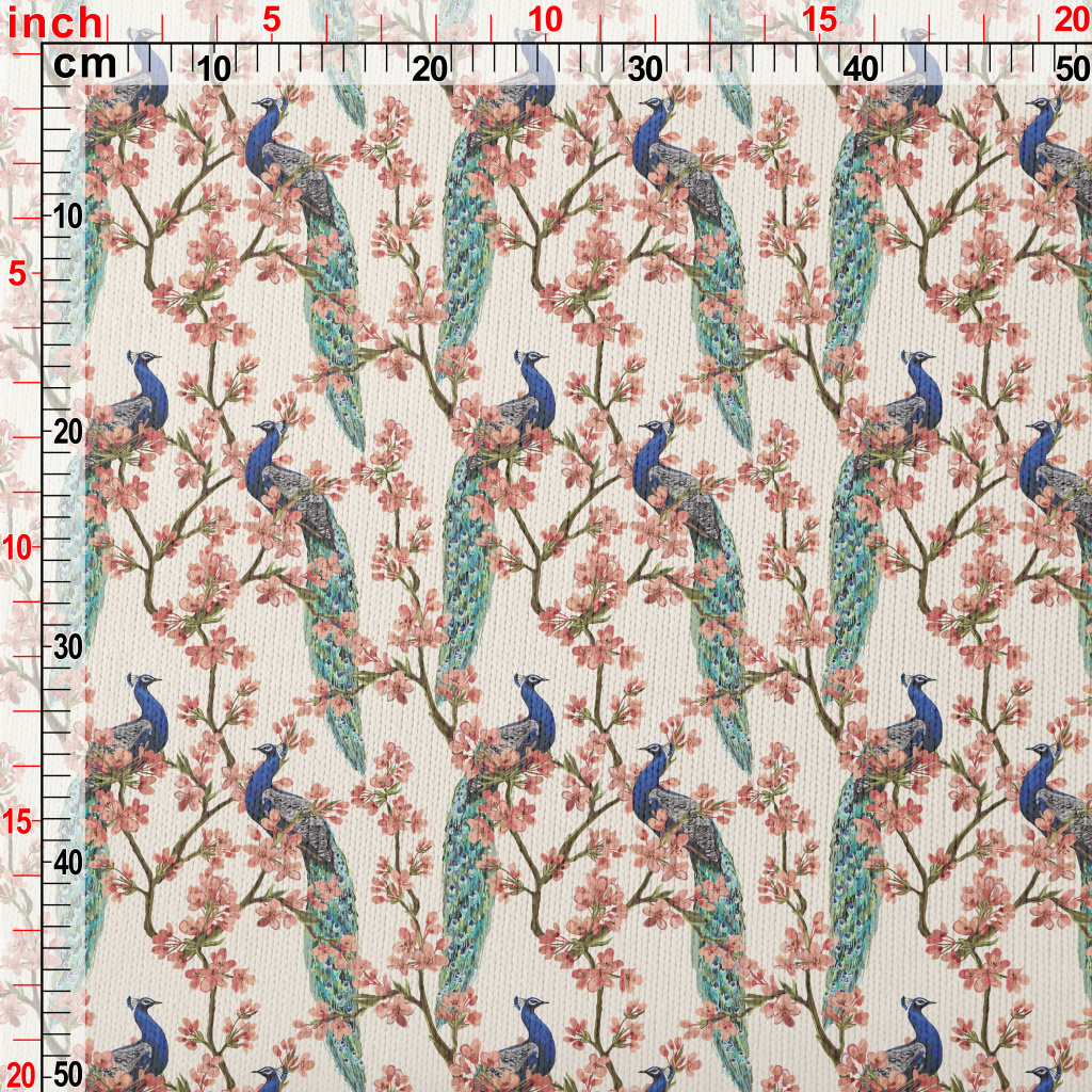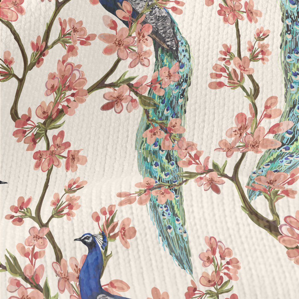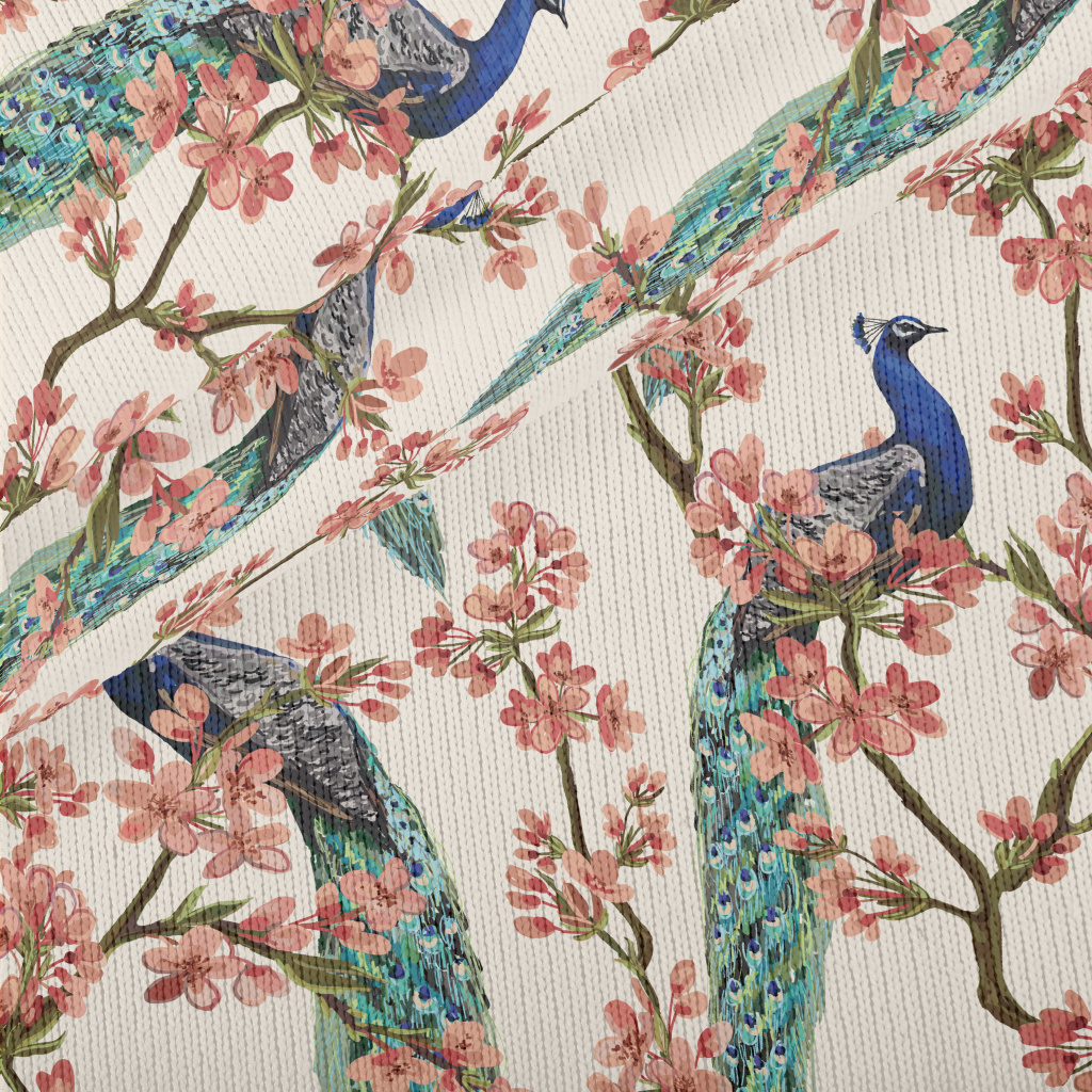 花樹下的動人孔雀仿毛衣布(幅寬150公分)