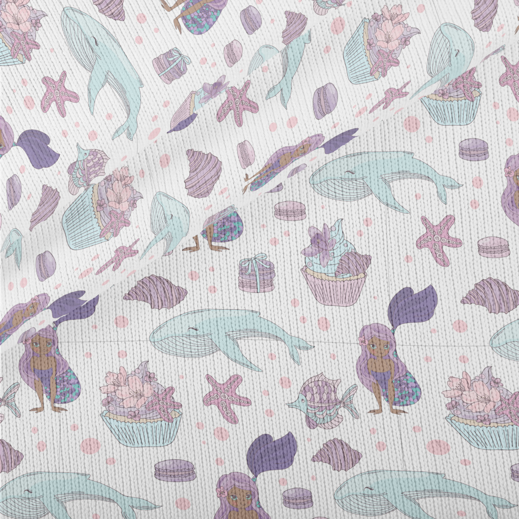 美人魚與鯨魚女孩仿毛衣布(幅寬150公分)