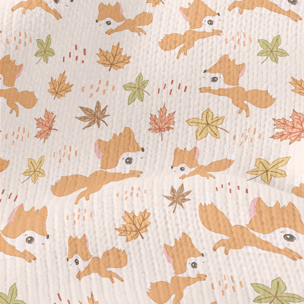 秋天奔跑的大眼狐狸仿毛衣布(幅寬150公分)