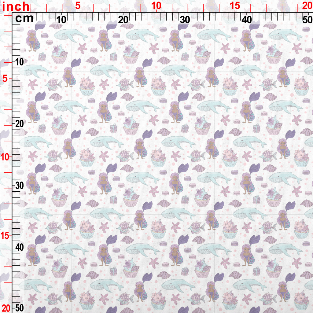美人魚與鯨魚女孩薄棉布(幅寬150公分)