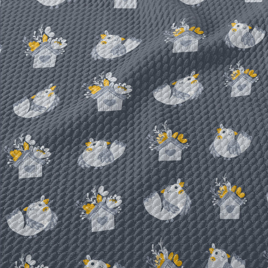 花點綴著房子和鳥泡泡布(幅寬160公分)