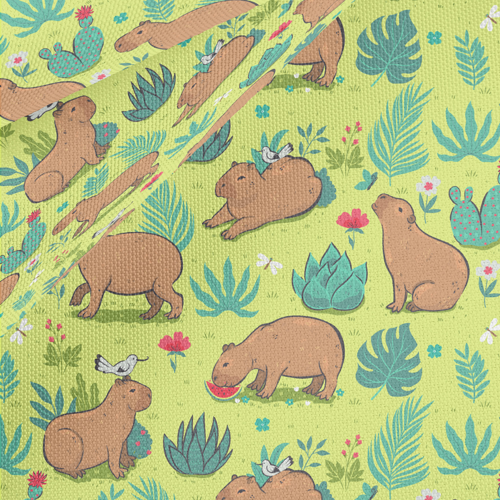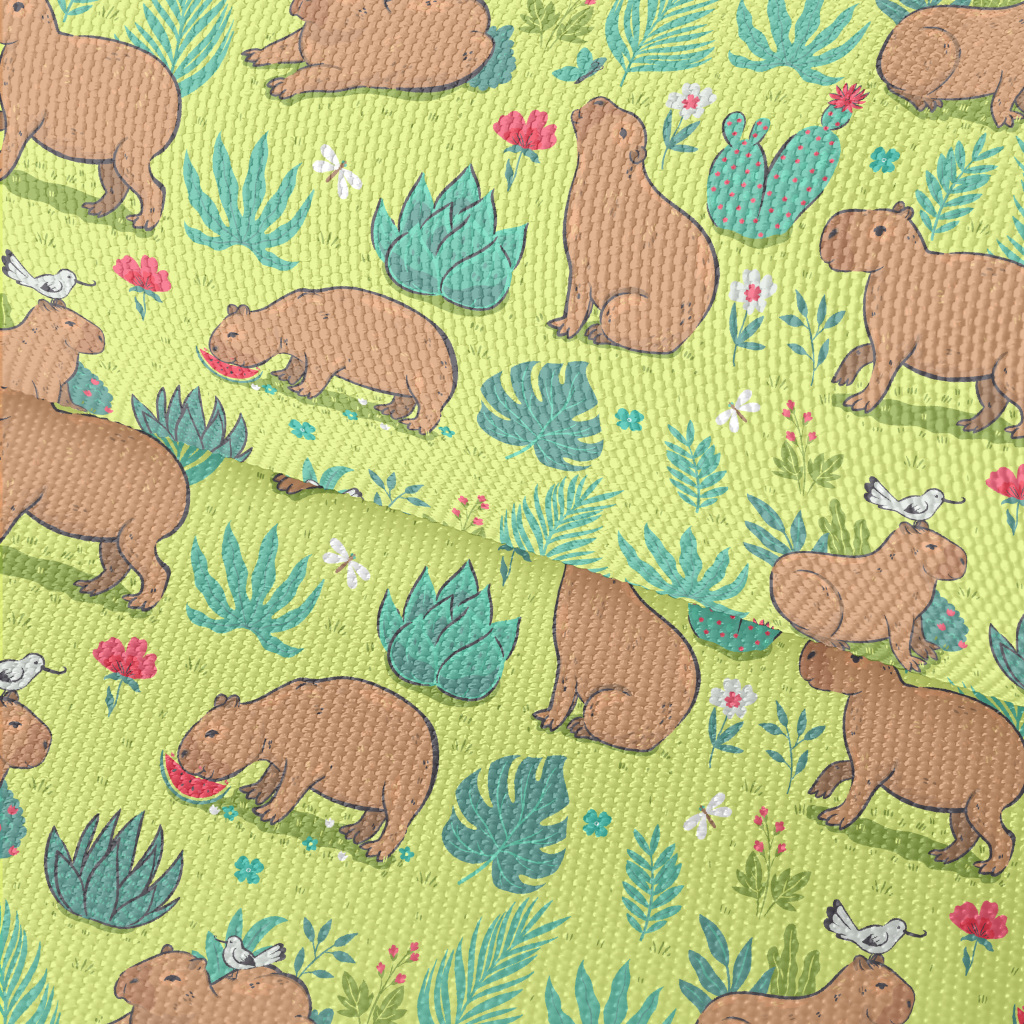 在草叢中玩耍的水豚牛津布(幅寬150公分)