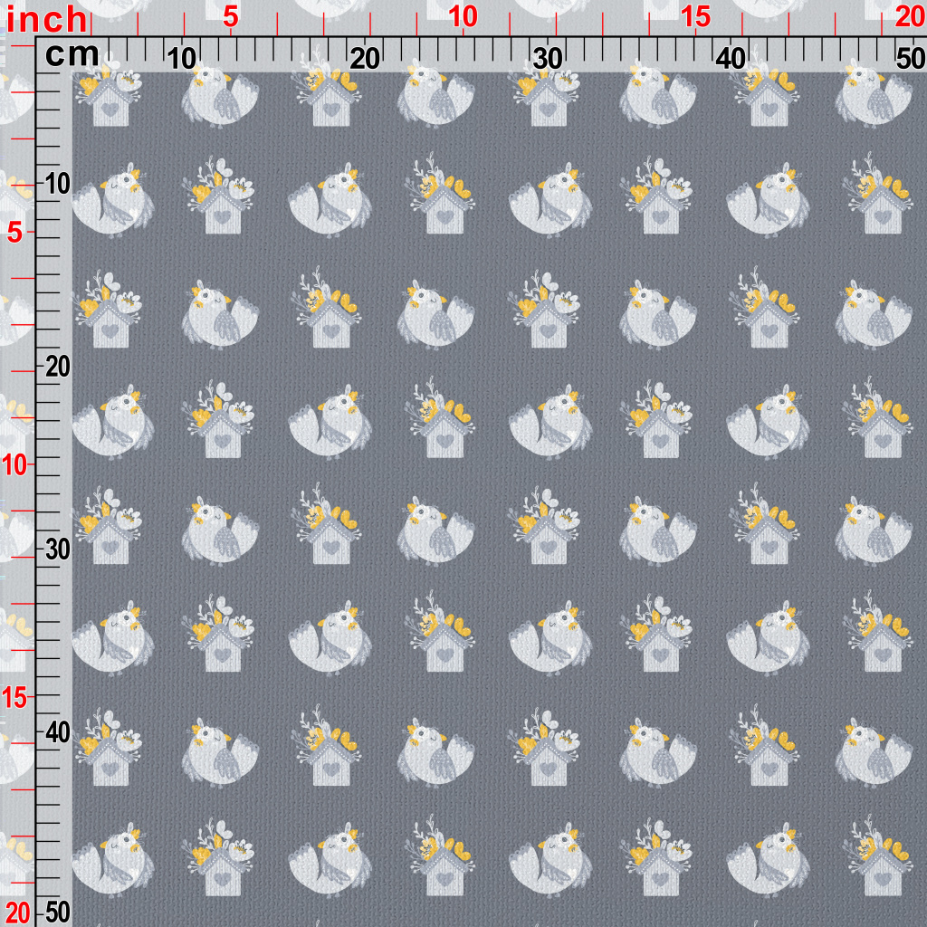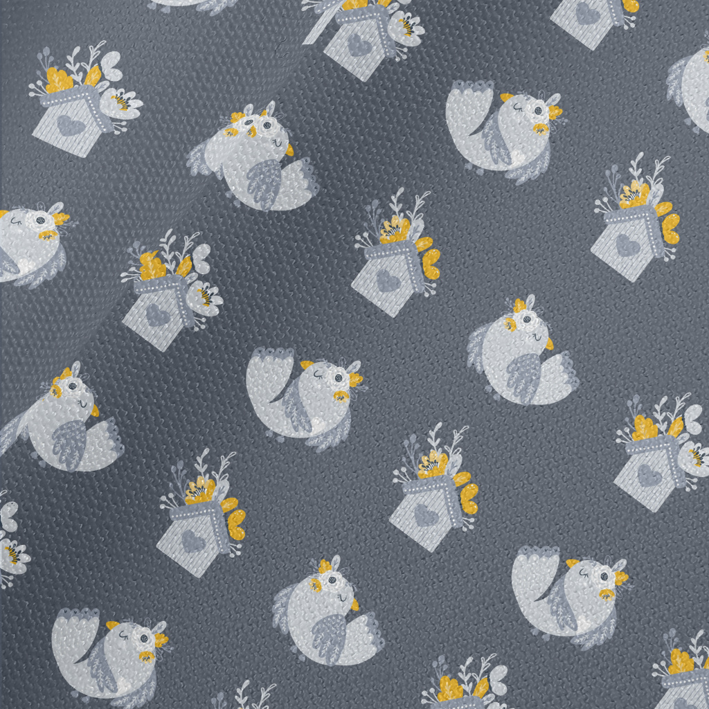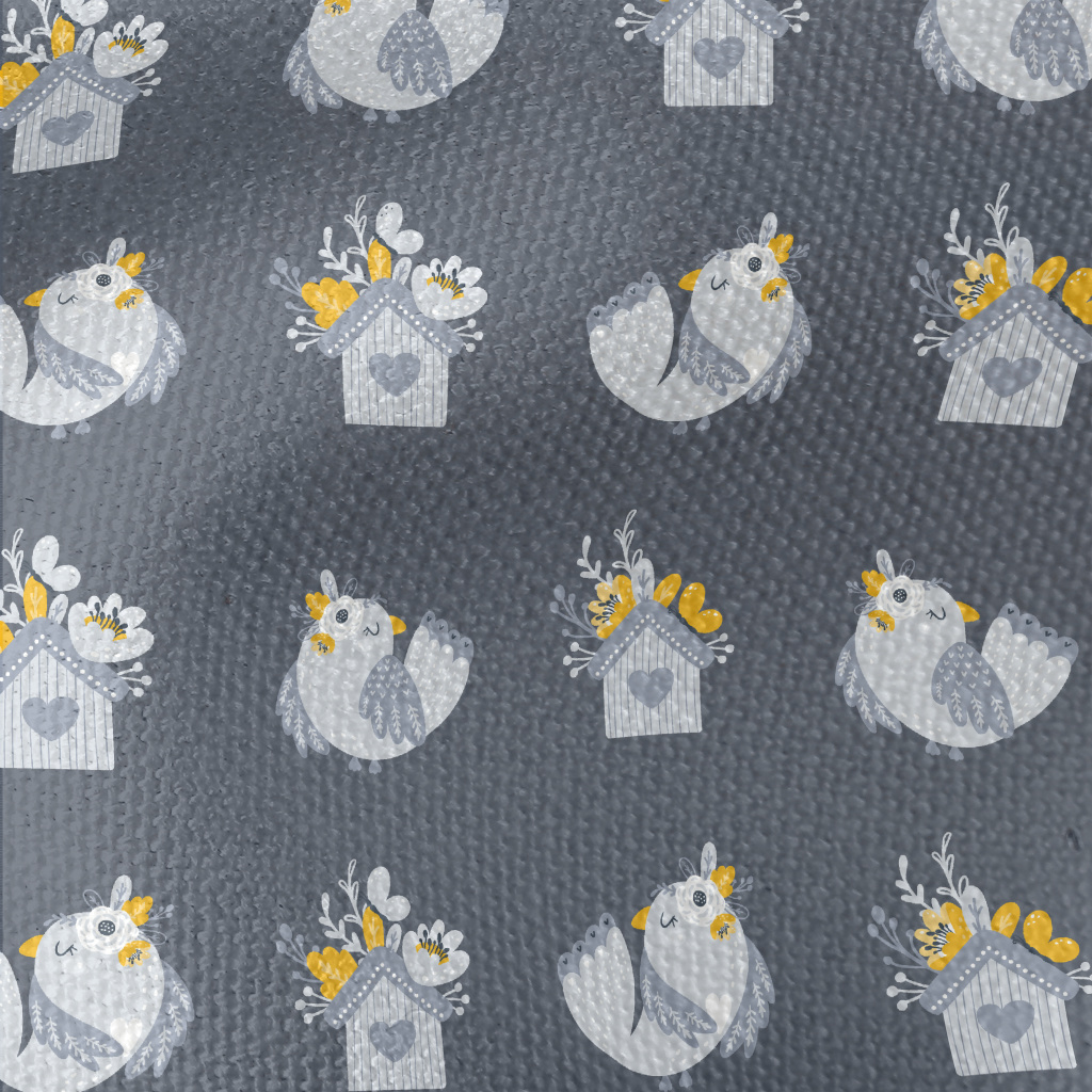 花點綴著房子和鳥帆布(幅寬150公分)