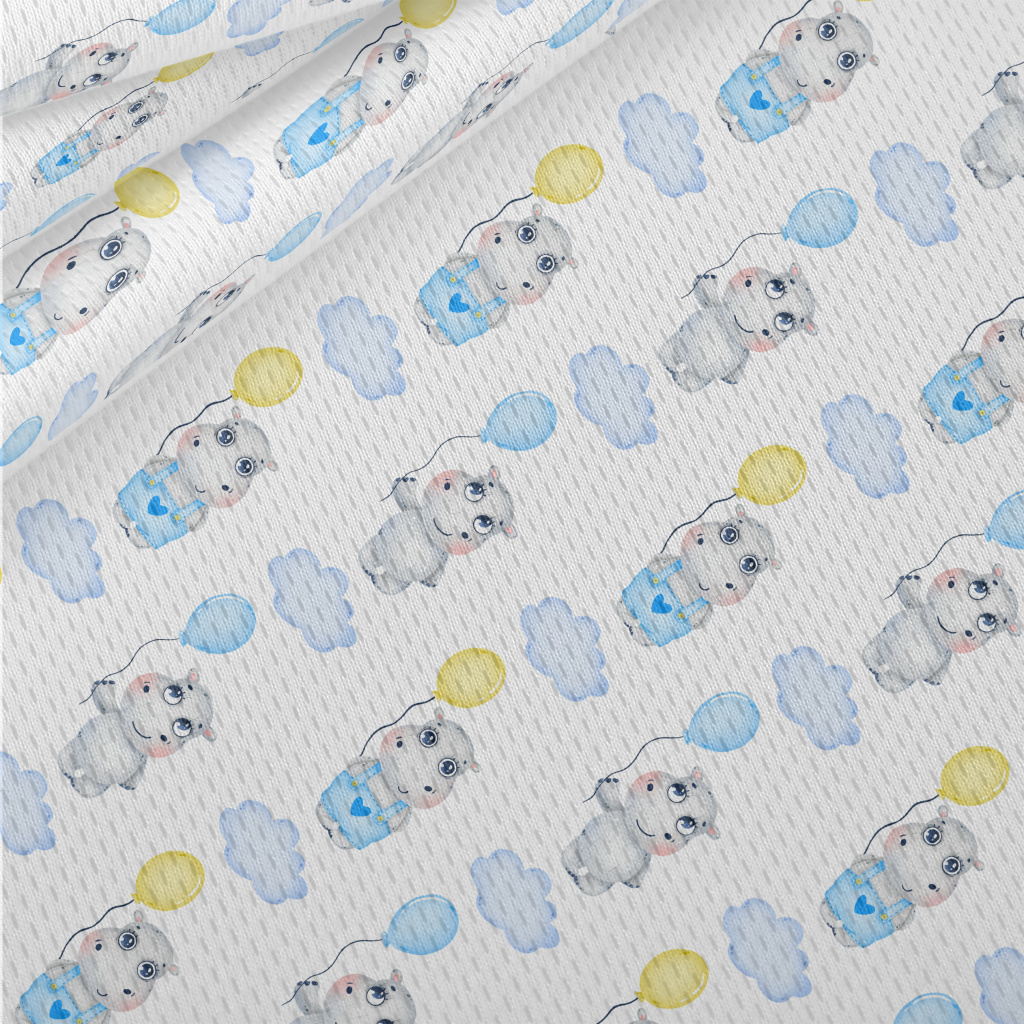 拿著氣球的河馬寶寶鳥眼布(幅寬160公分)