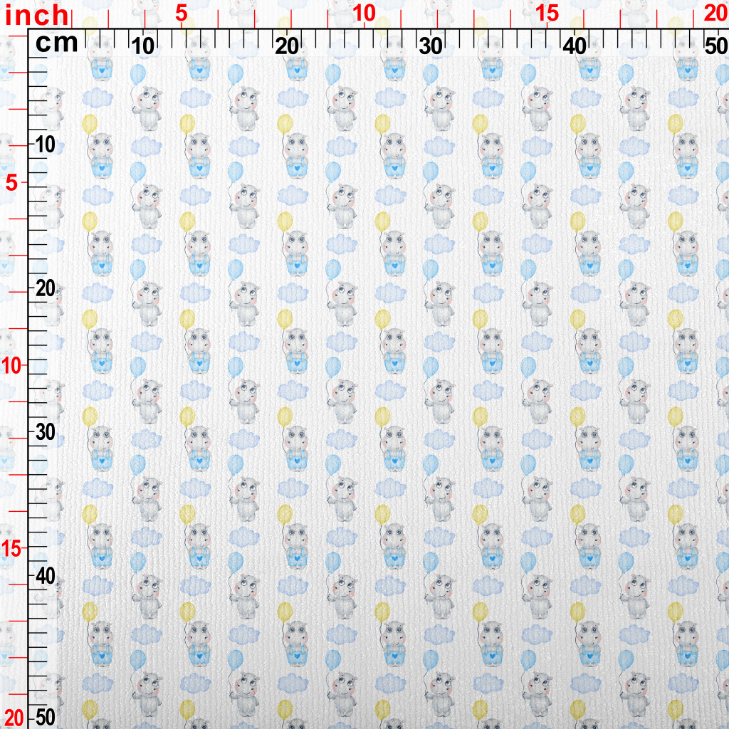 拿著氣球的河馬寶寶毛巾布(幅寬160公分)