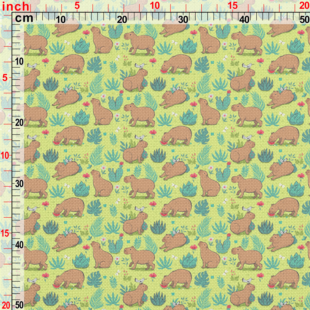 在草叢中玩耍的水豚麻布(幅寬150公分)