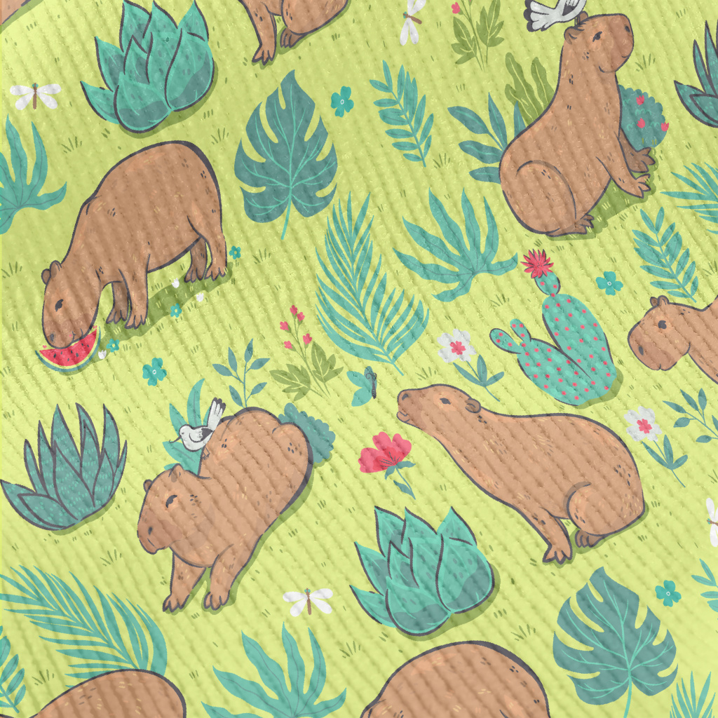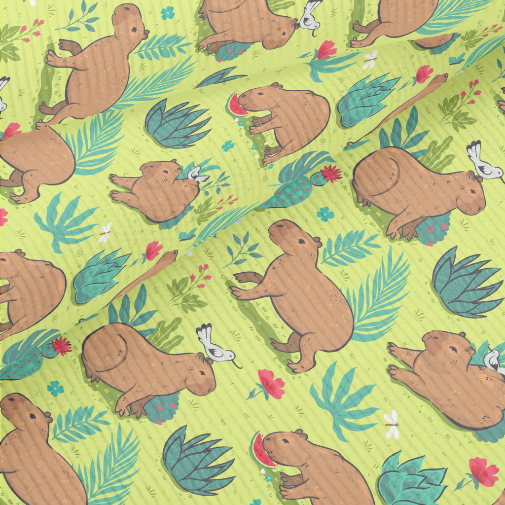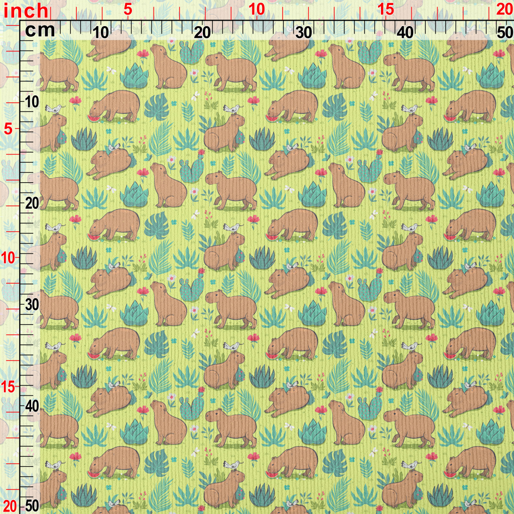 在草叢中玩耍的水豚燈芯絨(幅寬150公分)
