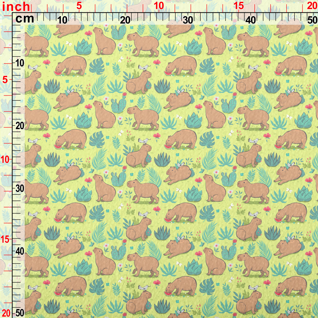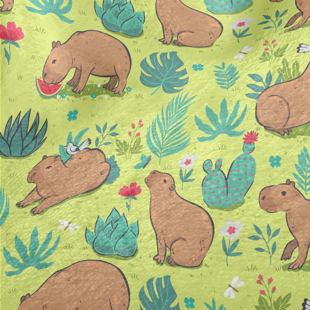 在草叢中玩耍的水豚法蘭絨(幅寬150公分)