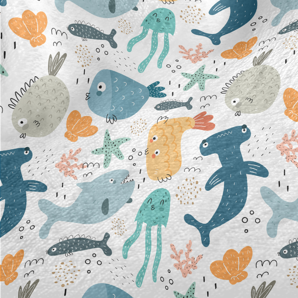 搞笑有趣的海底生物法蘭絨(幅寬150公分)