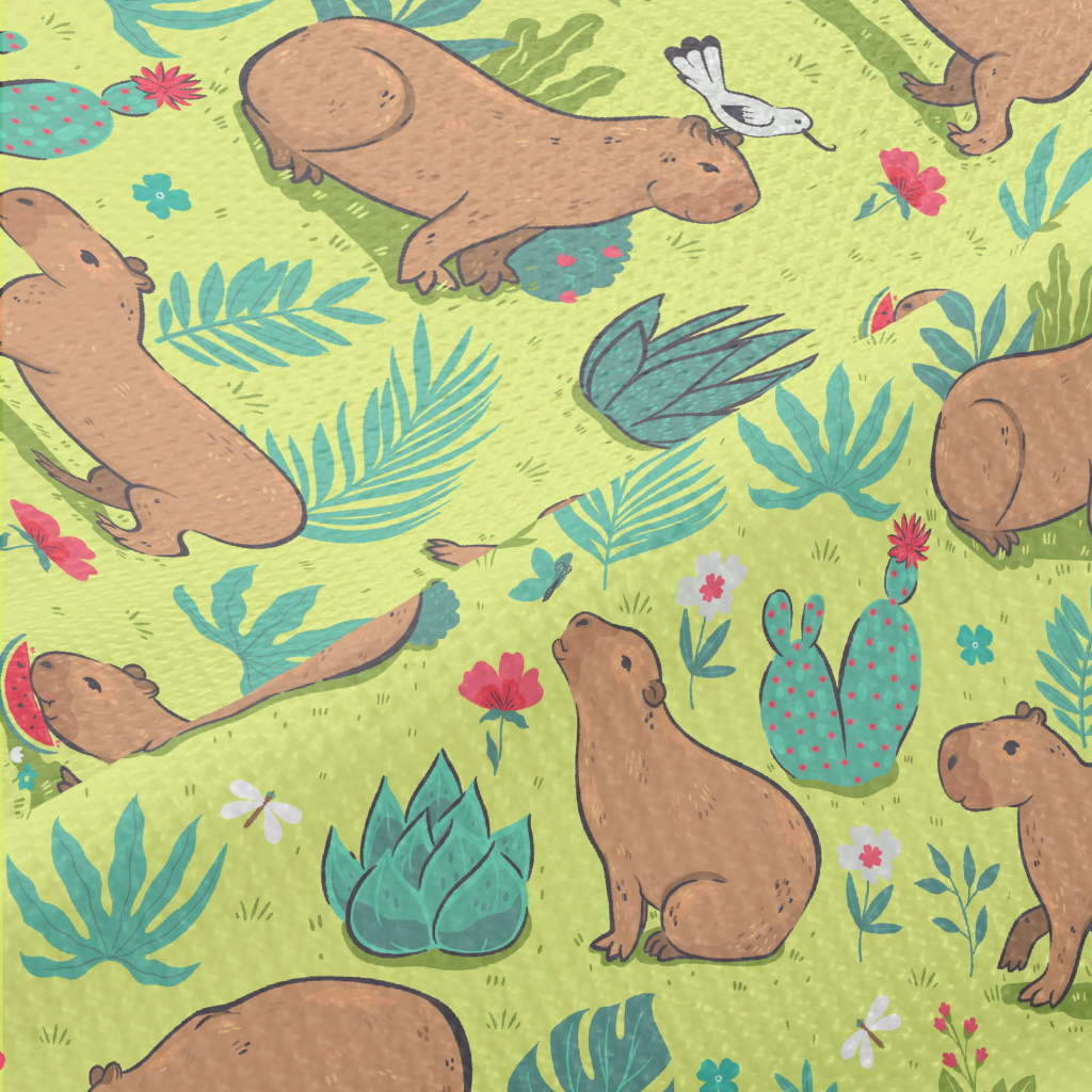 在草叢中玩耍的水豚高爾布(幅寬180公分)