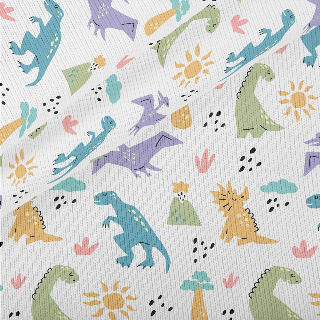 恐龍旁的火山即將爆發仿毛衣布(幅寬150公分)