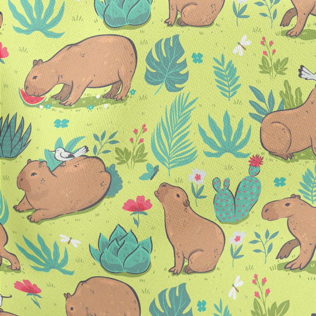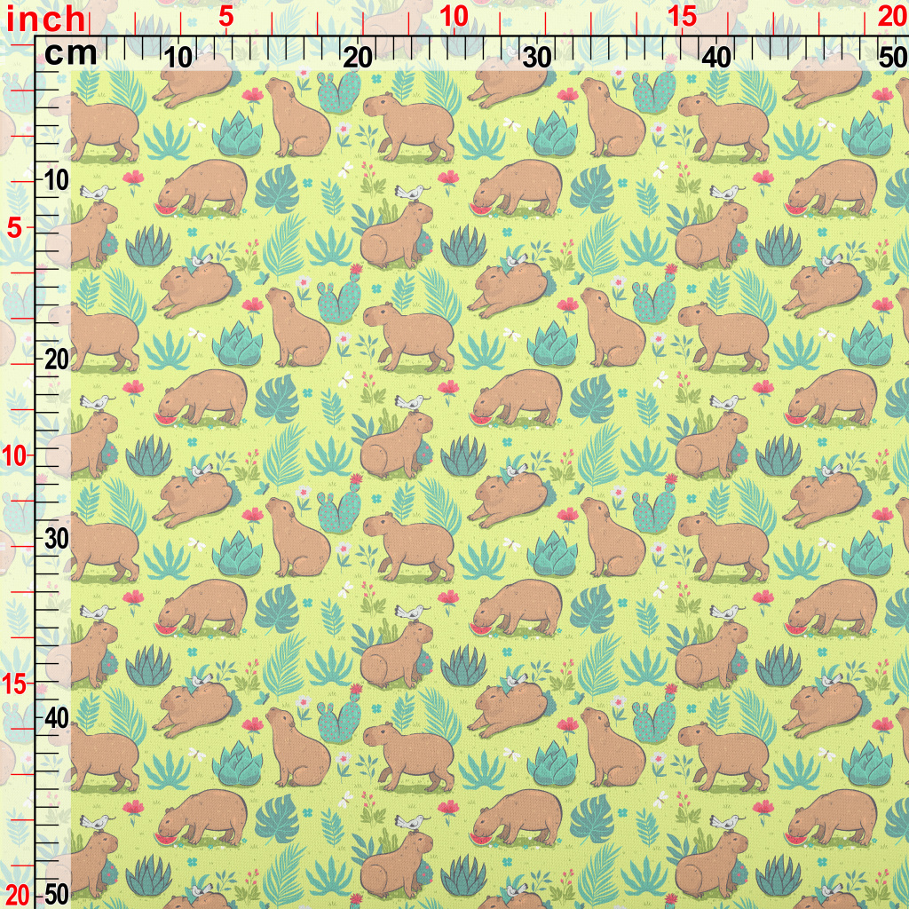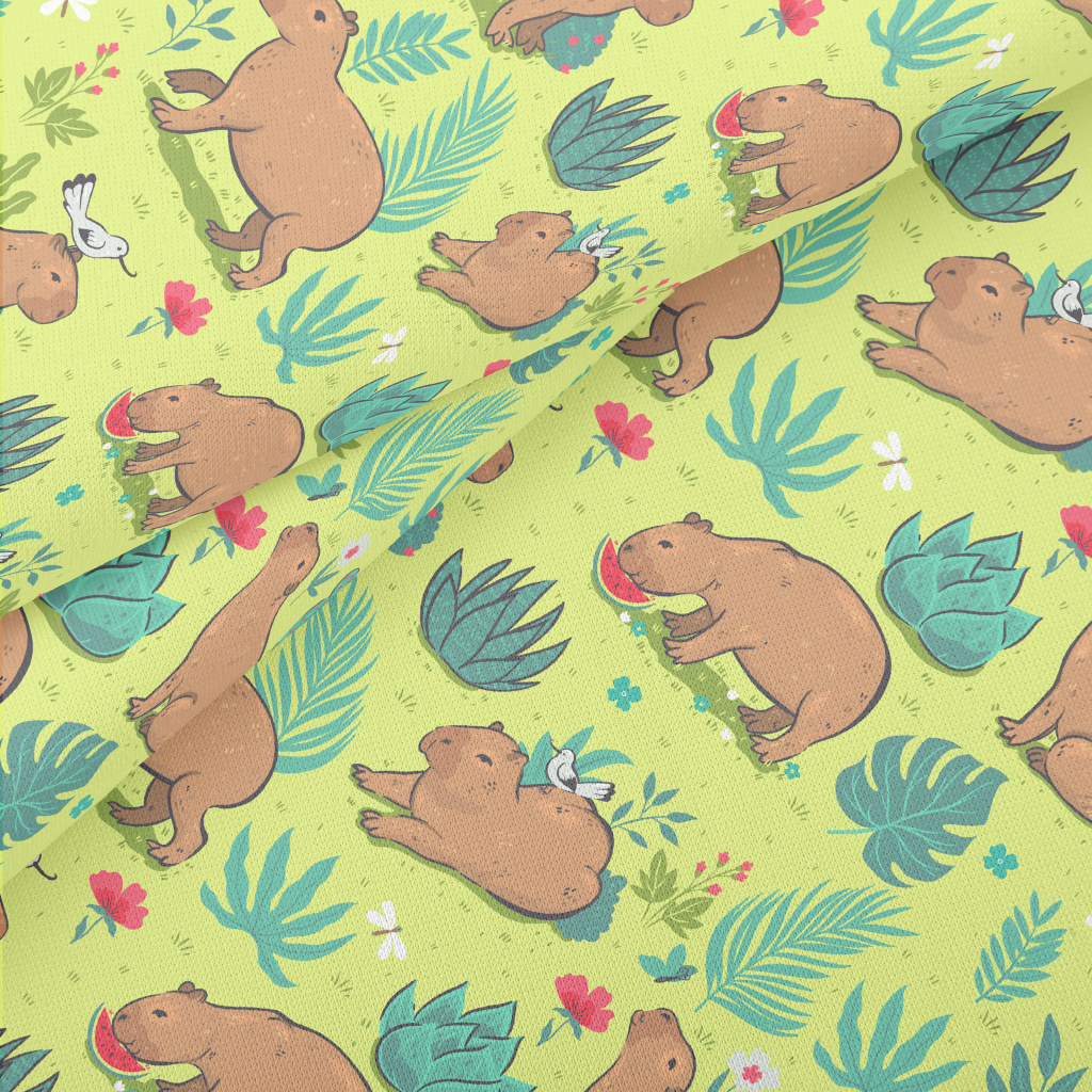 在草叢中玩耍的水豚薄棉布(幅寬150公分)