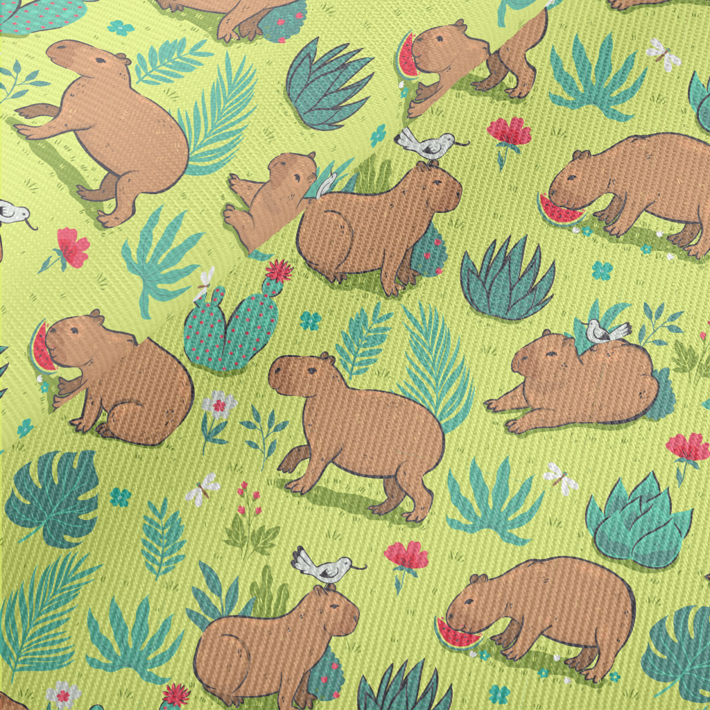 在草叢中玩耍的水豚厚棉布(幅寬150公分)