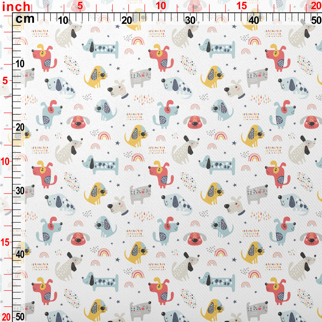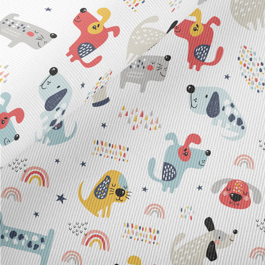 調皮有趣的彩色小狗斜紋布(幅寬150公分)