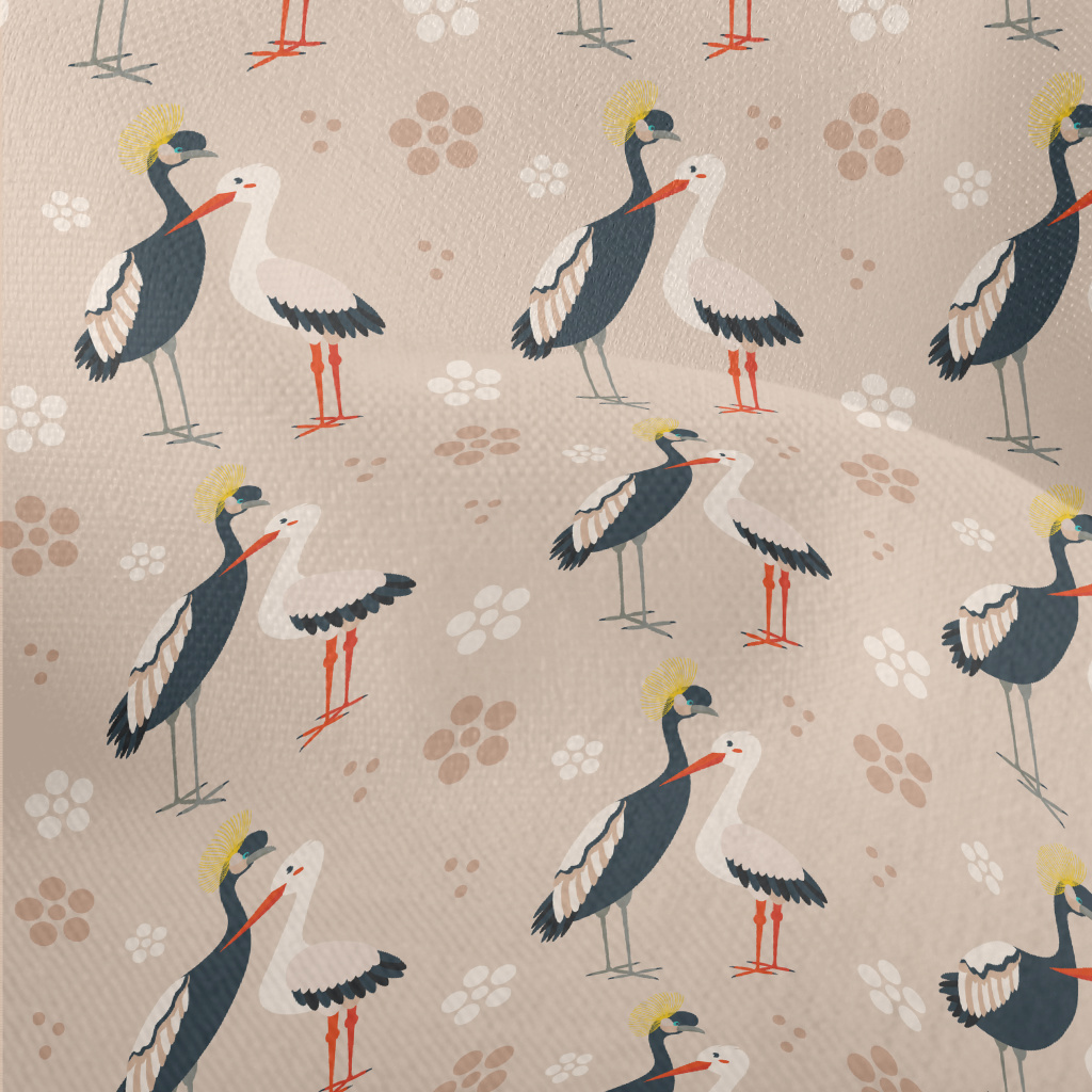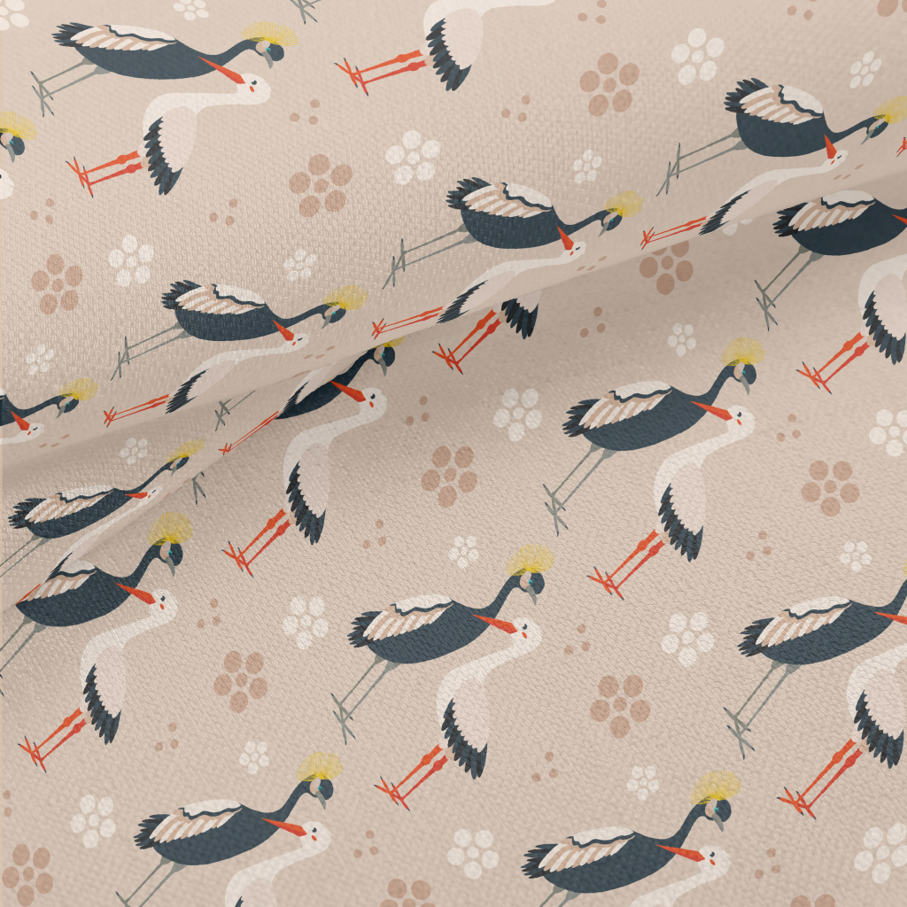 甜蜜溫馨的紅鶴情侶竹節麻(幅寬150公分)