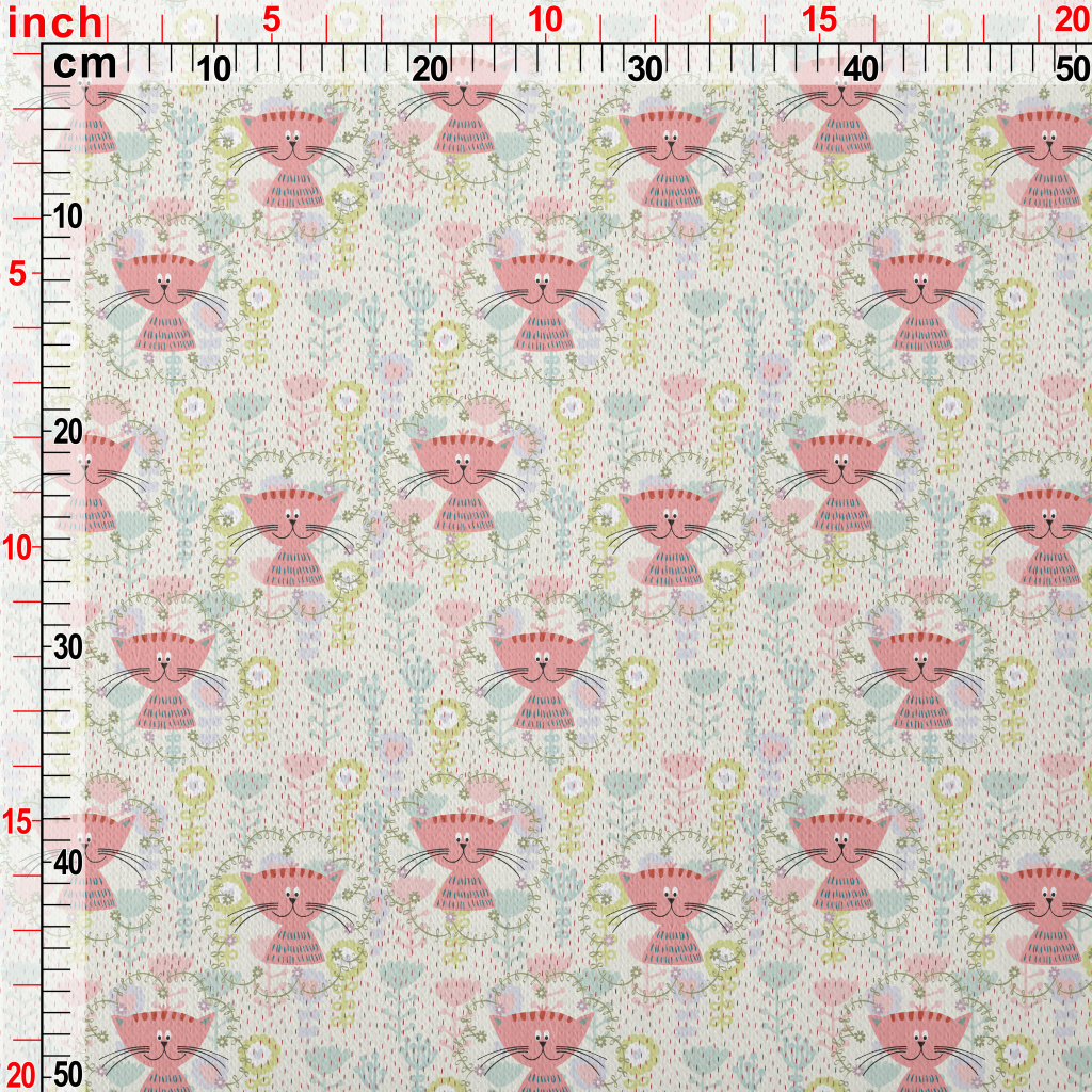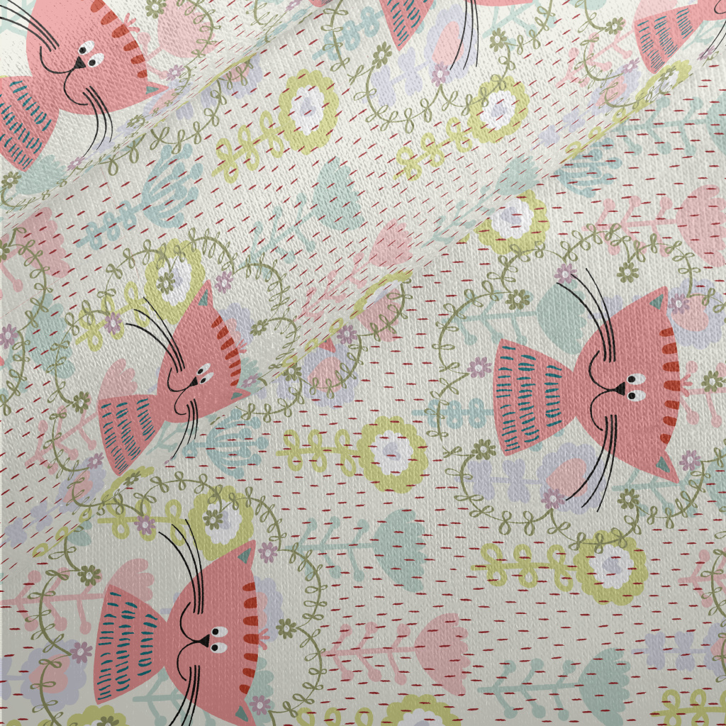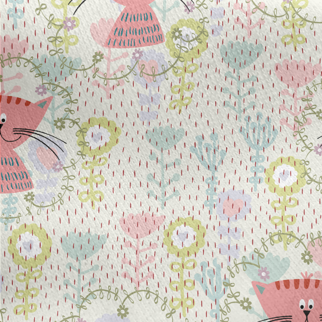花叢裡的粉色貓咪刷毛布(幅寬150公分)