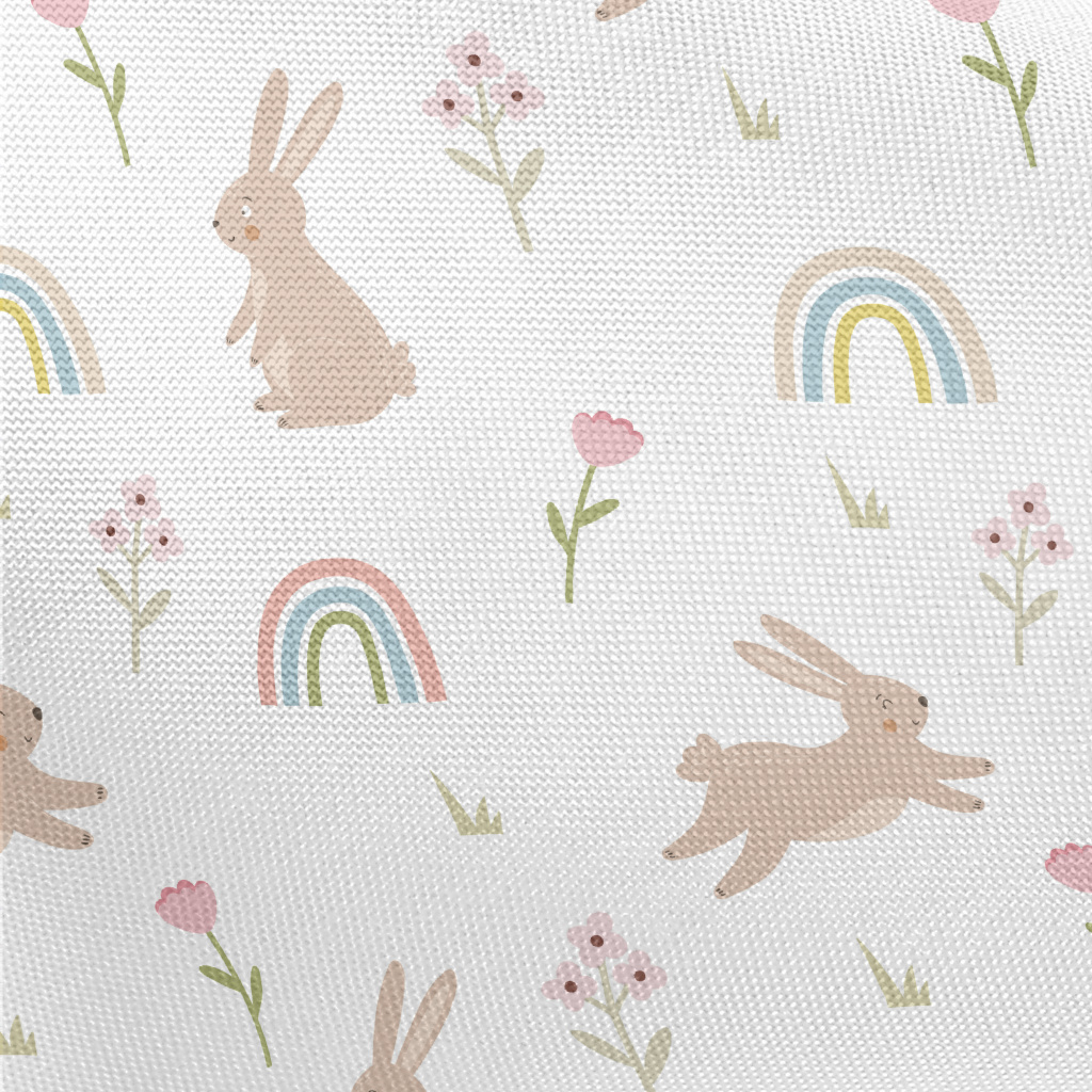 雀躍奔跑的兔子和花春亞紡(幅寬160公分)