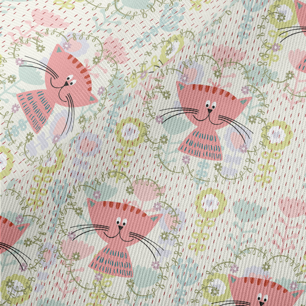 花叢裡的粉色貓咪厚棉布(幅寬150公分)