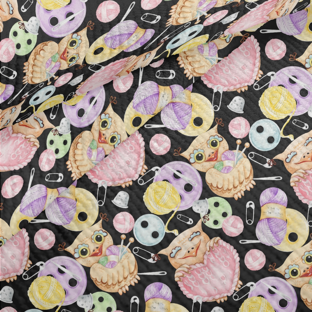 抱著縫紉用品的動物毛巾布(幅寬160公分)