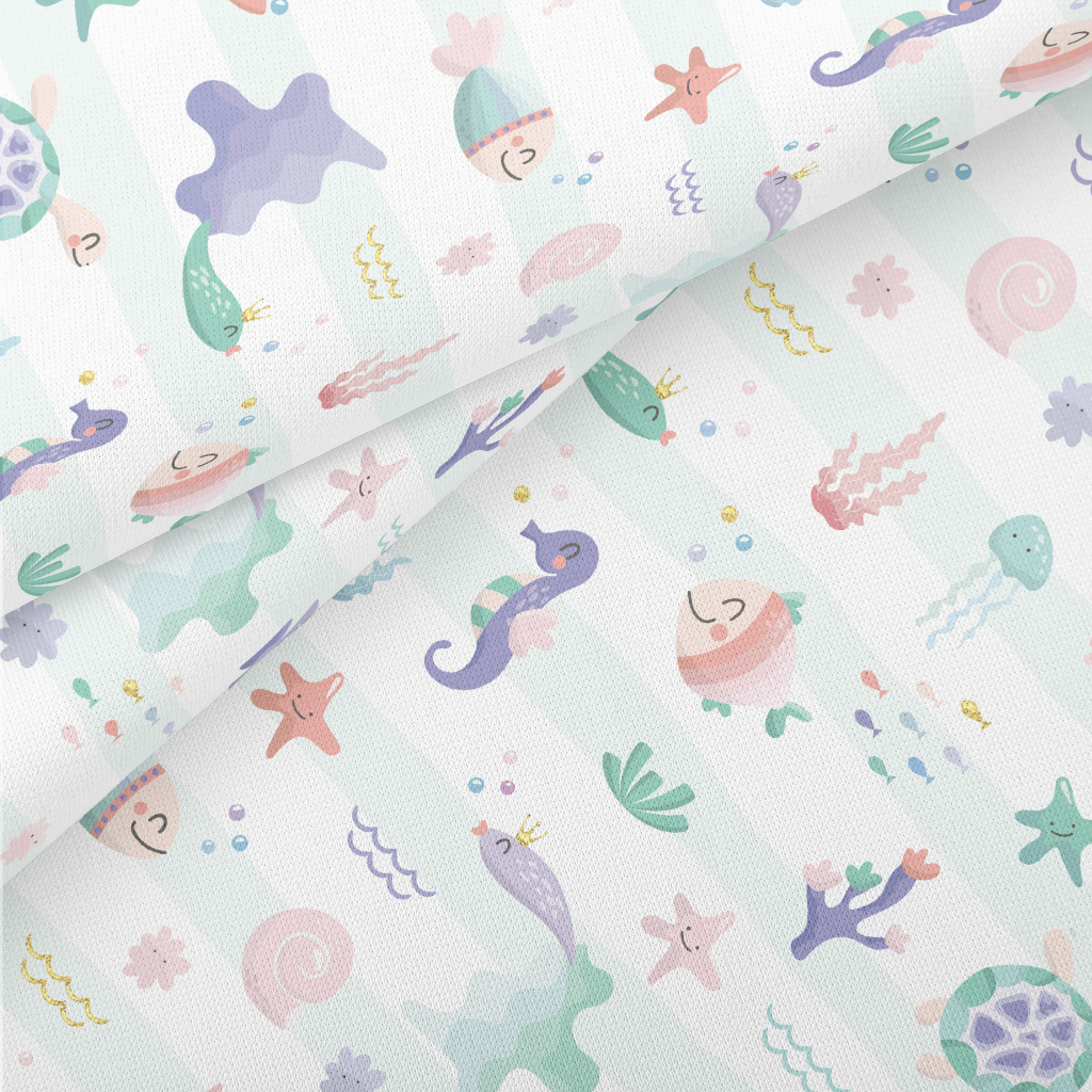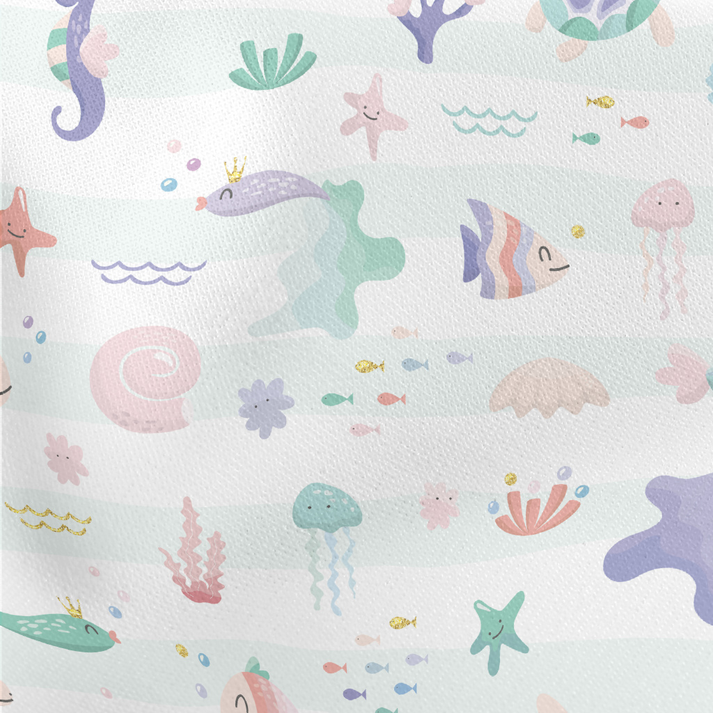 在海底快樂生活的生物羅馬布(幅寬160公分)