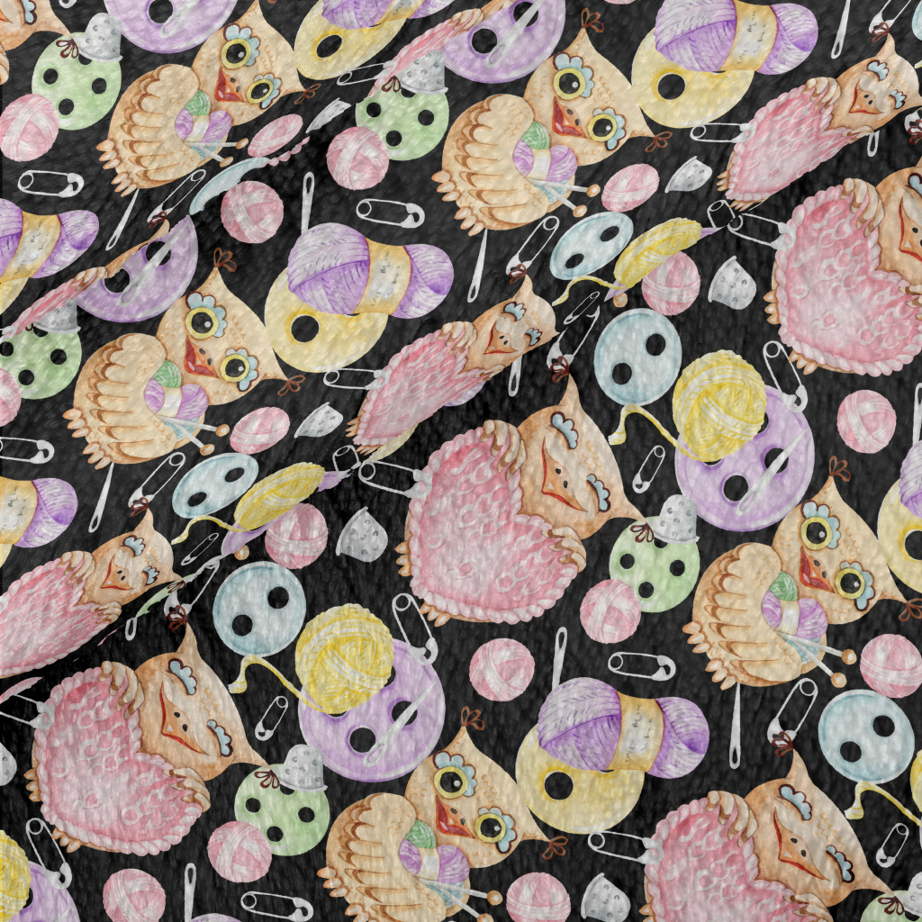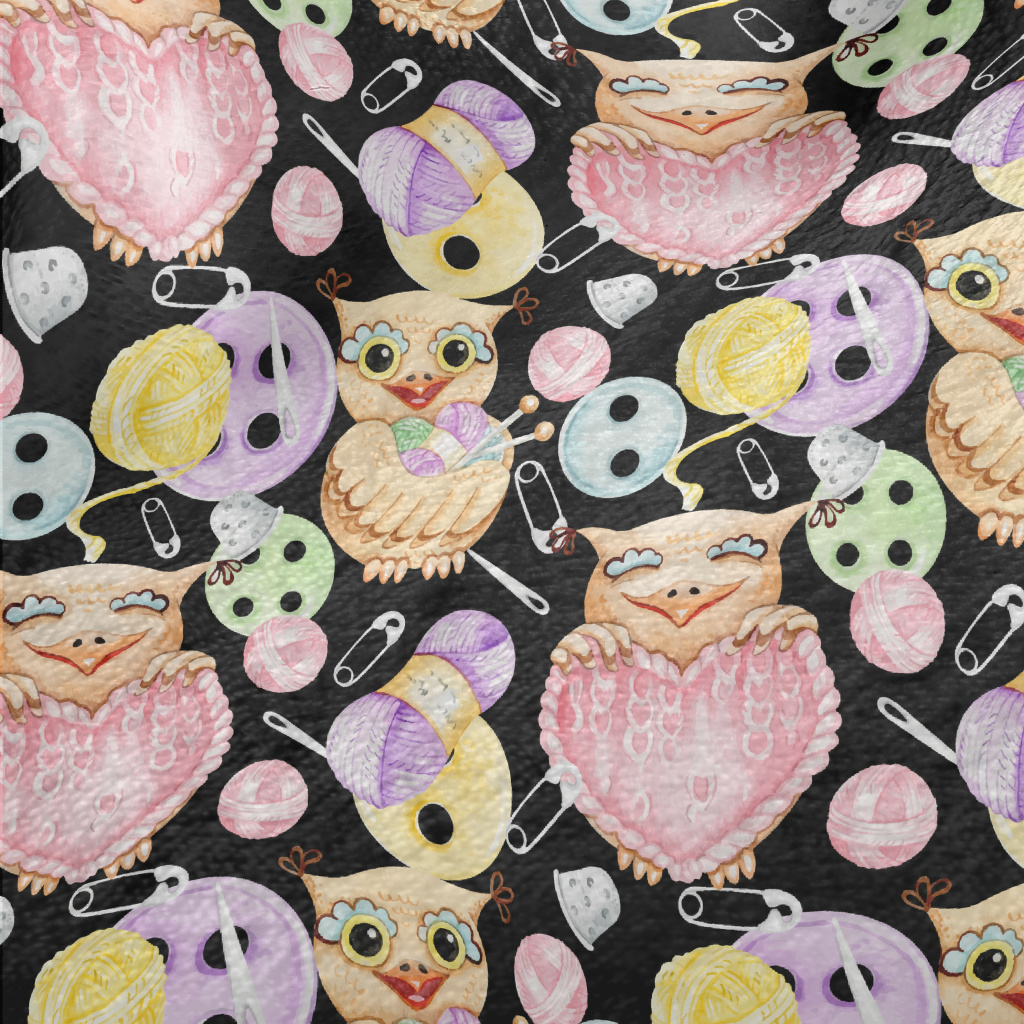 抱著縫紉用品的動物法蘭絨(幅寬150公分)