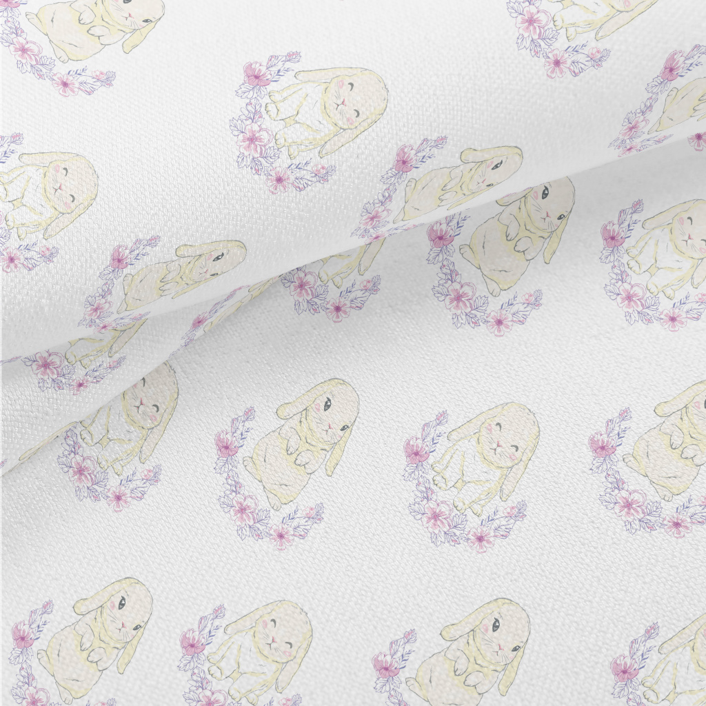 被花圈圍繞的垂耳兔竹節麻(幅寬150公分)