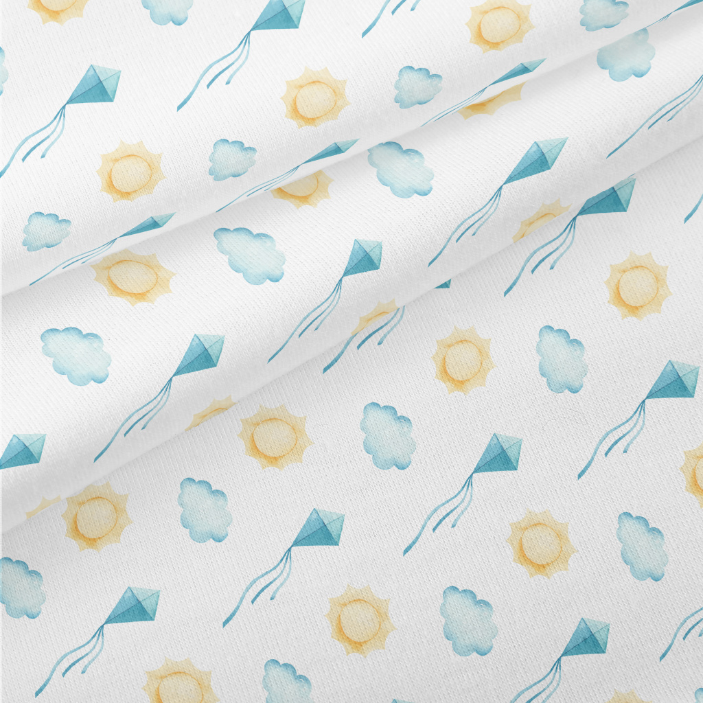 在雲與太陽間放風箏仿棉布(幅寬150公分)