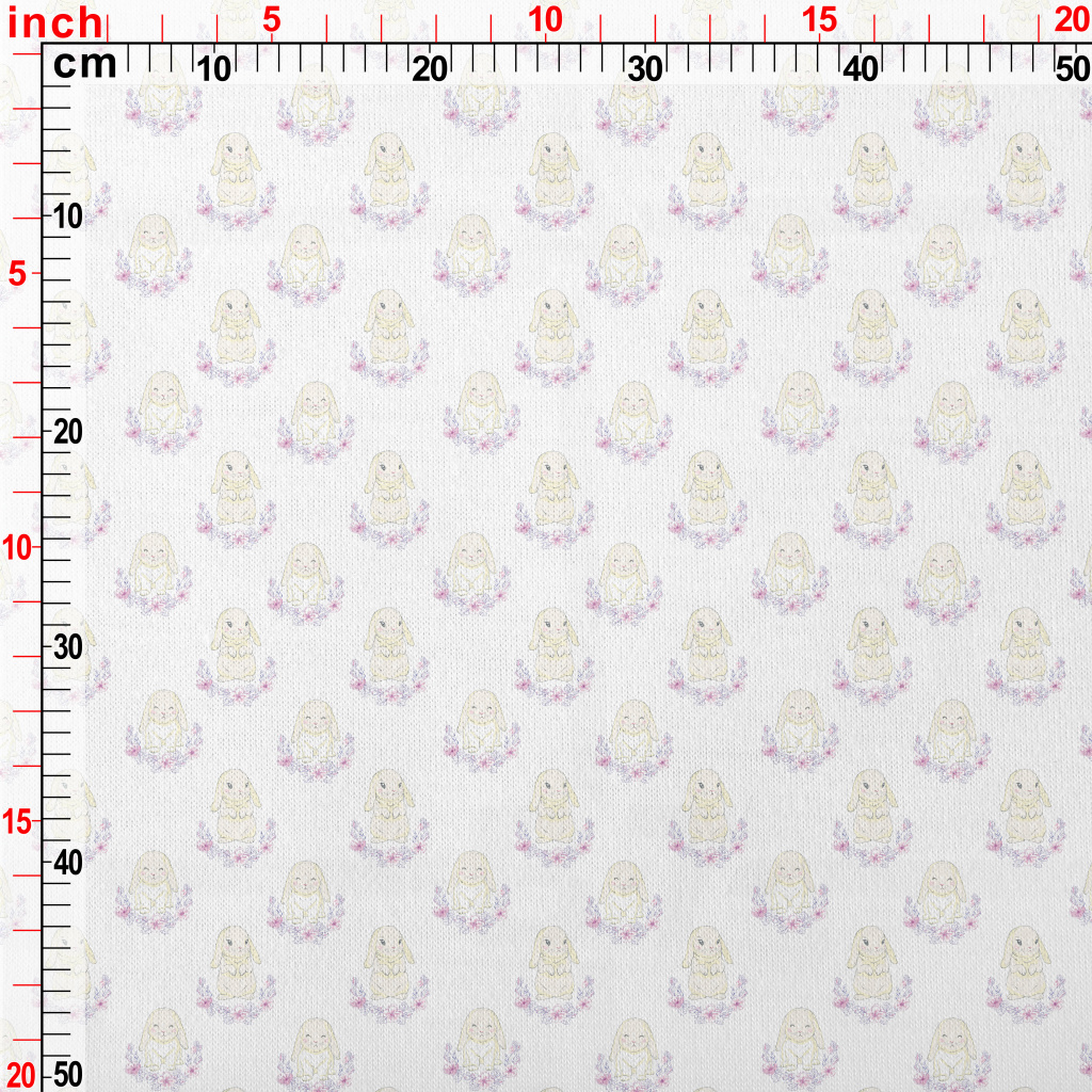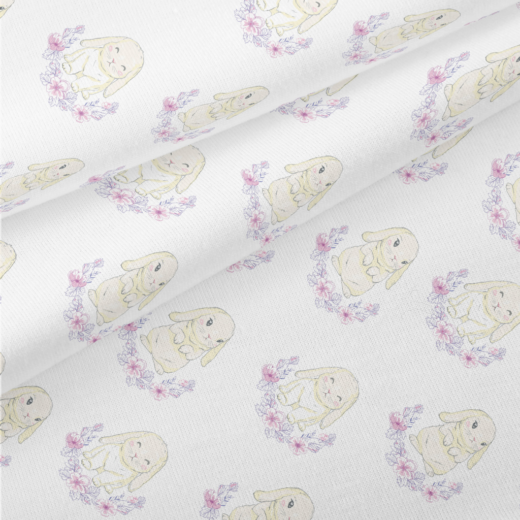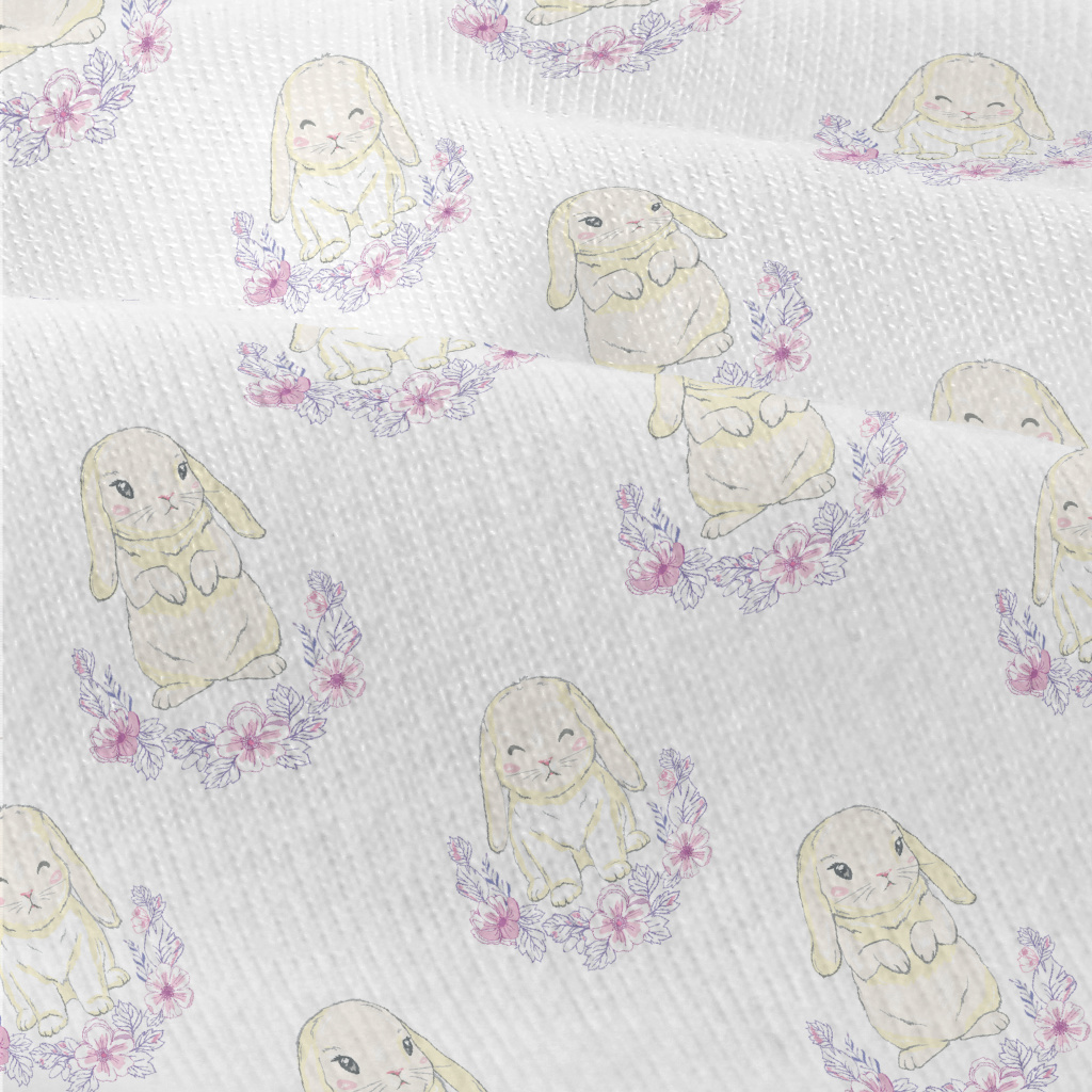 被花圈圍繞的垂耳兔仿棉布(幅寬150公分)