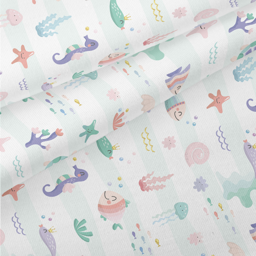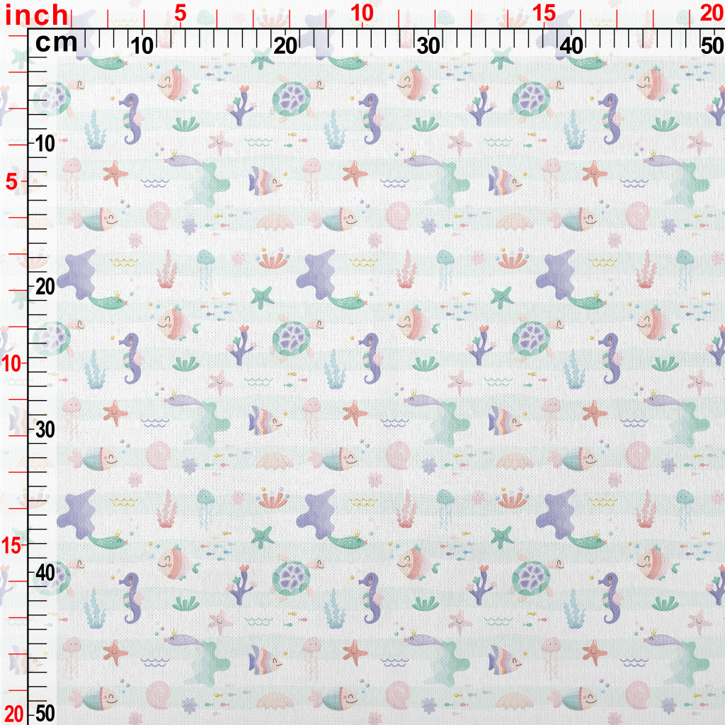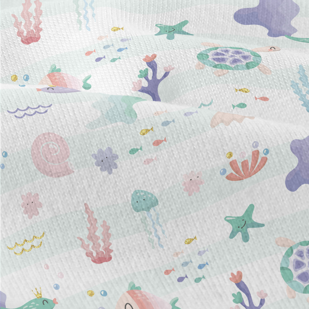 在海底快樂生活的生物仿棉布(幅寬150公分)