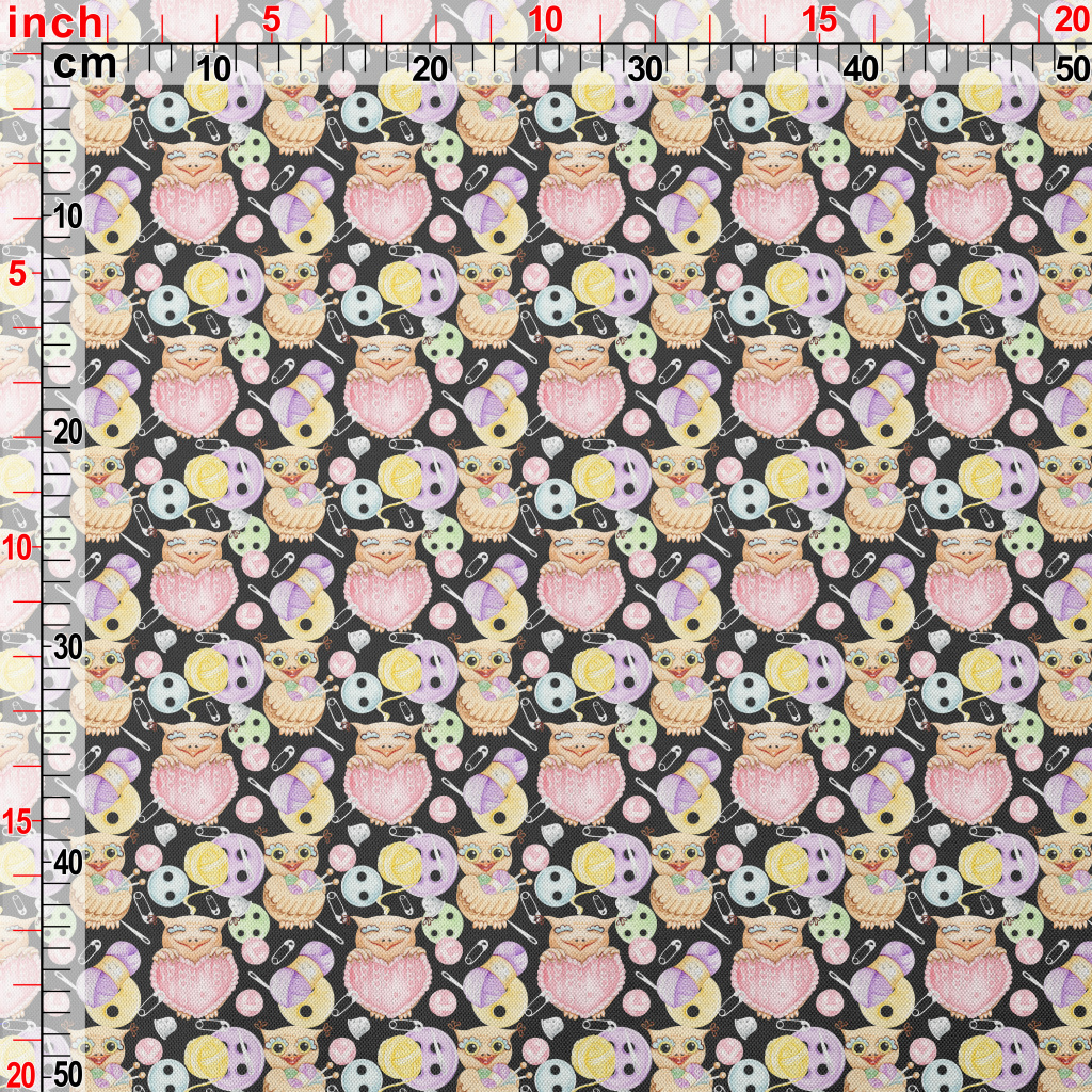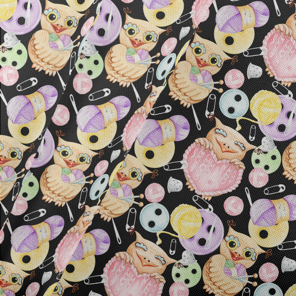 抱著縫紉用品的動物春亞紡(幅寬160公分)