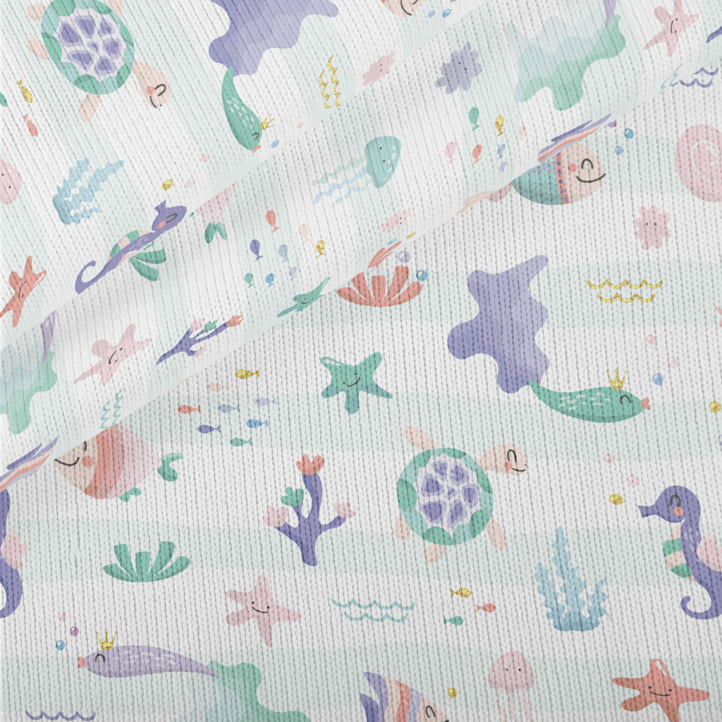 在海底快樂生活的生物仿毛衣布(幅寬150公分)