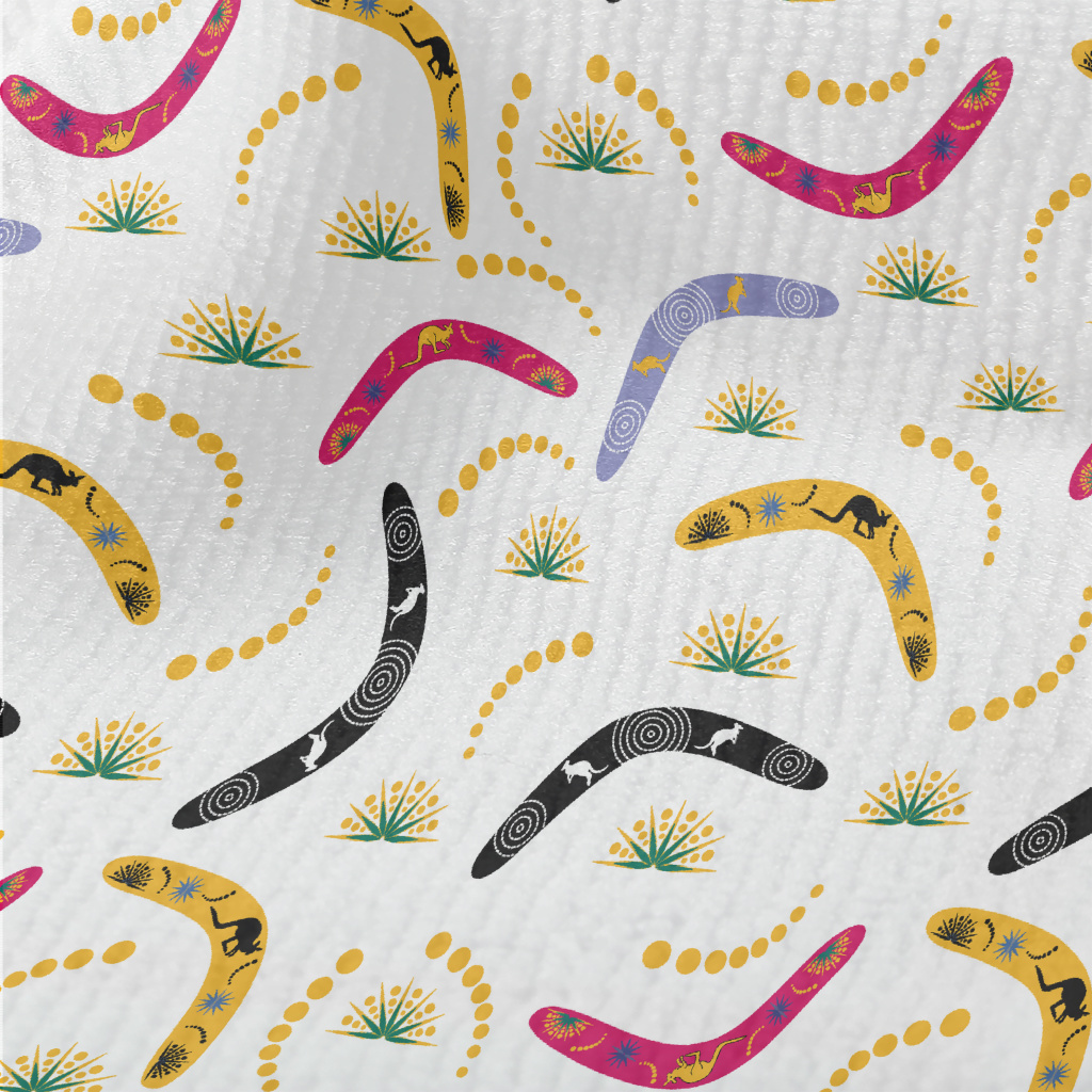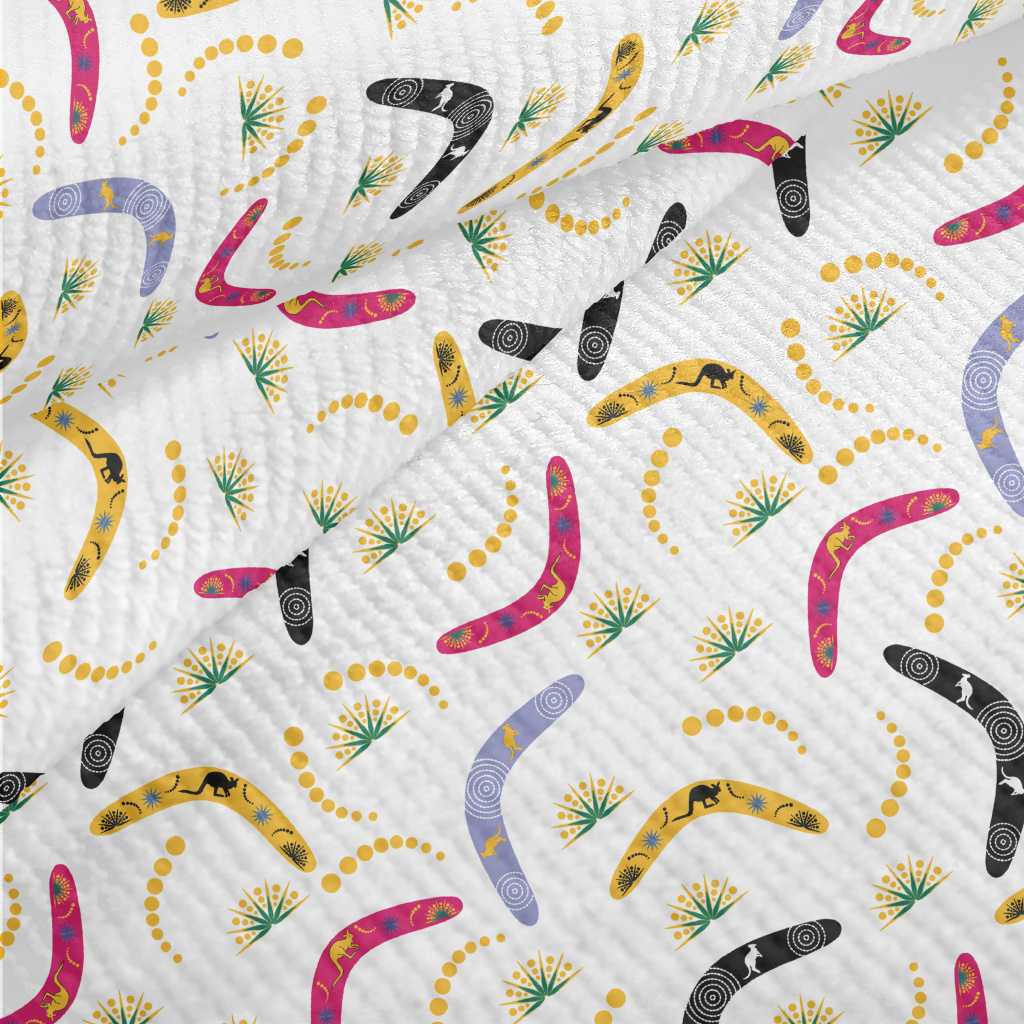 袋鼠圖呈現在迴力鏢上毛巾布(幅寬160公分)