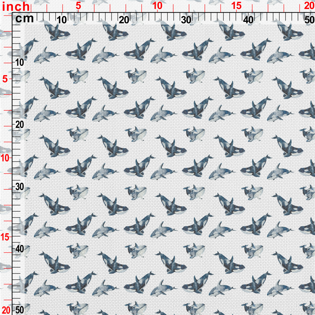 自由自在游泳的虎鯨麻布(幅寬150公分)